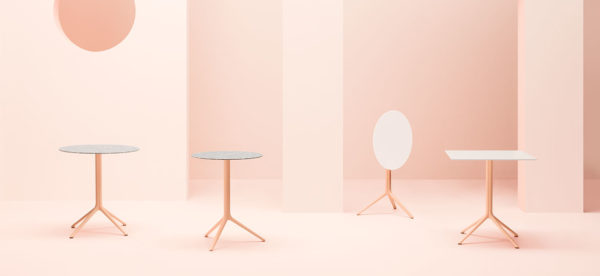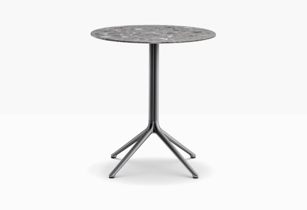Elliot table has an elegant silhouette and minimal design. The shape of the column, which transforms into an airy base, expresses continuity and attention to detail. The four-lobed column in extruded aluminium narrows down and splits open to form four feet in die-cast aluminium. Suitable also for outdoor. Height 730 mm.