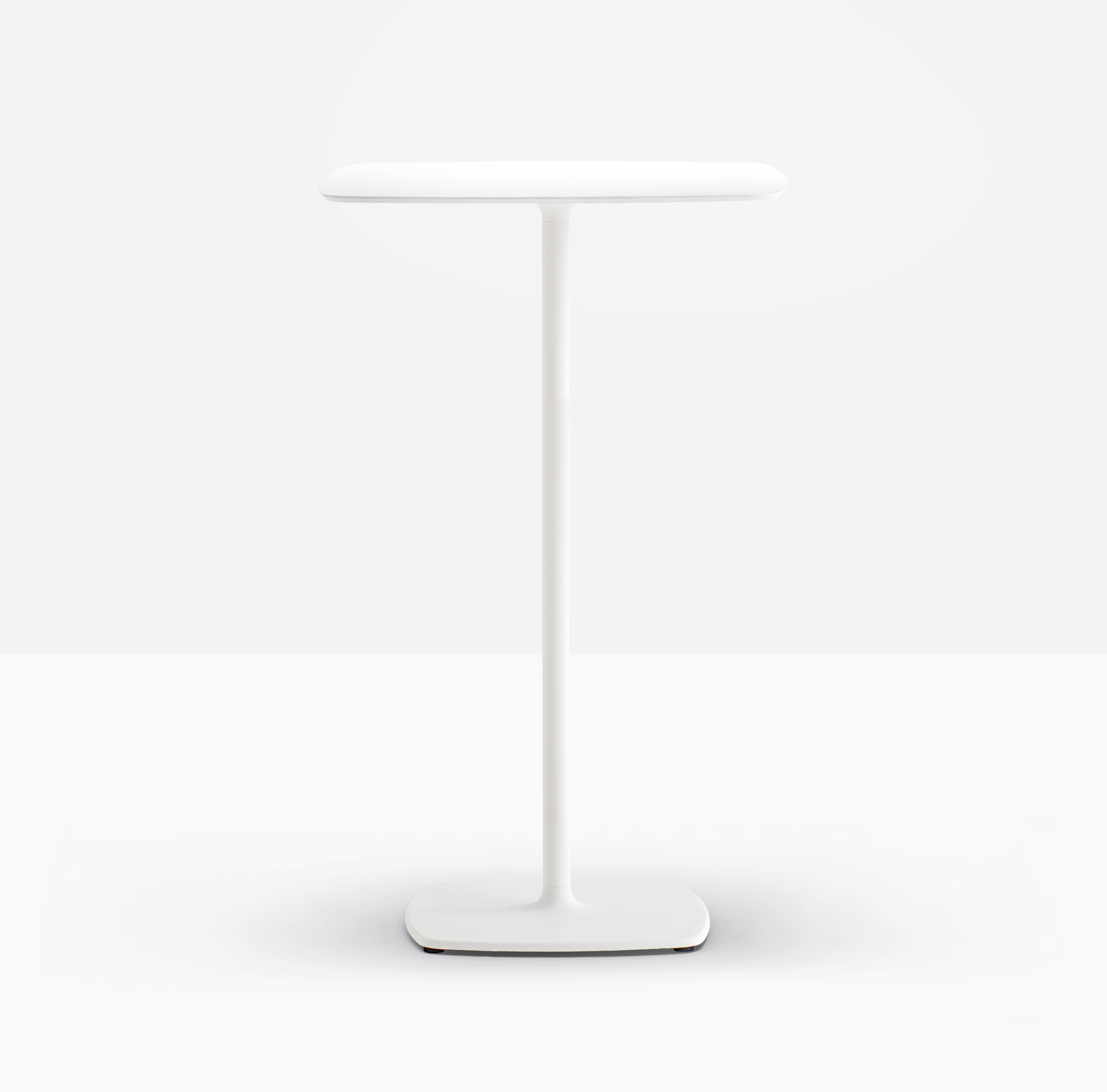 Stylus table base stands out for its minimalistic look and organic outline, thanks to the slim central column and to the rounded corners of its flat square base. Very stable, it is suitable for both square and round table tops.