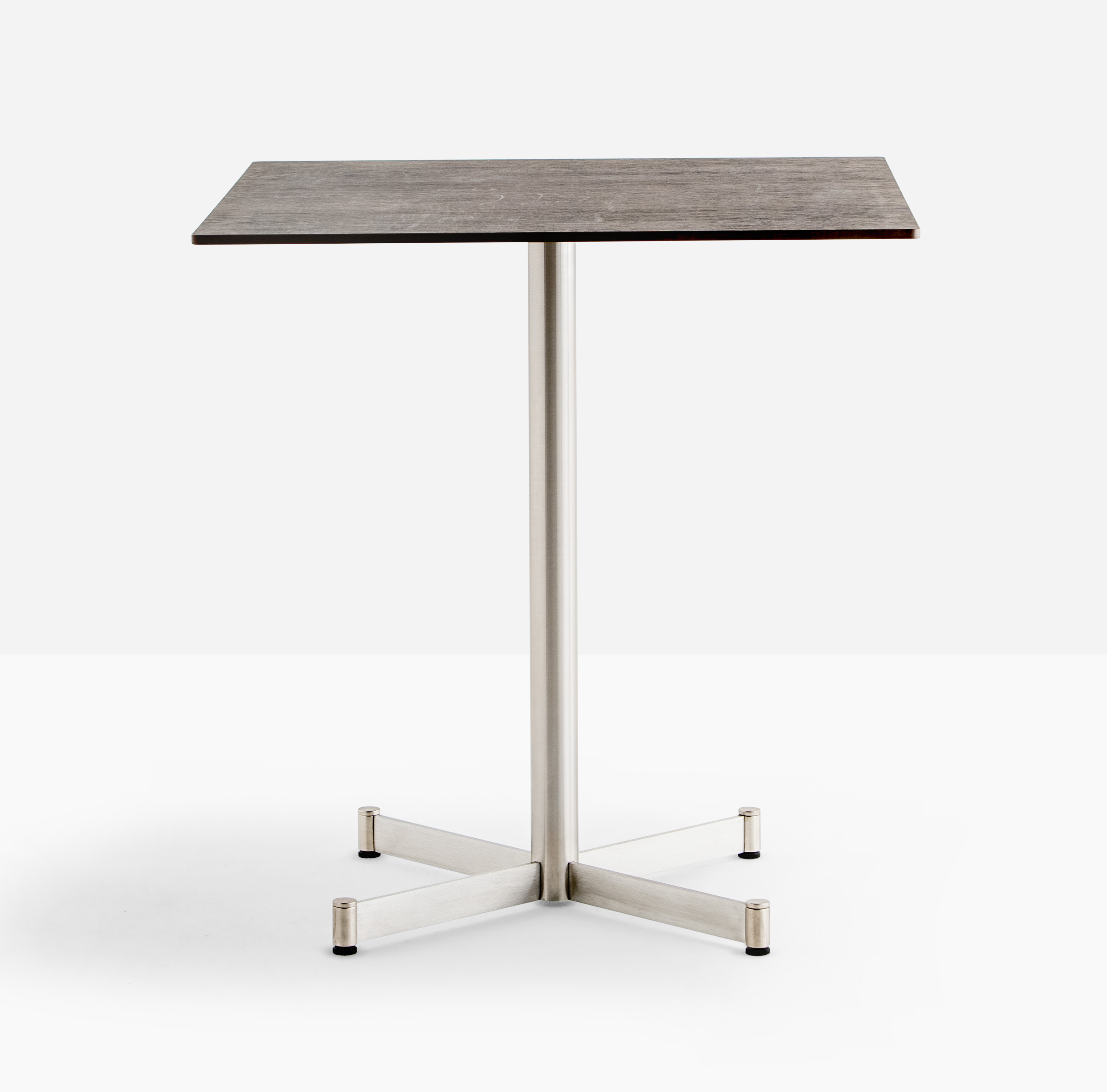 Zenith table base, stainless steel base 620x620 mm and column Ø50 mm, cast aluminium adjustable feet.