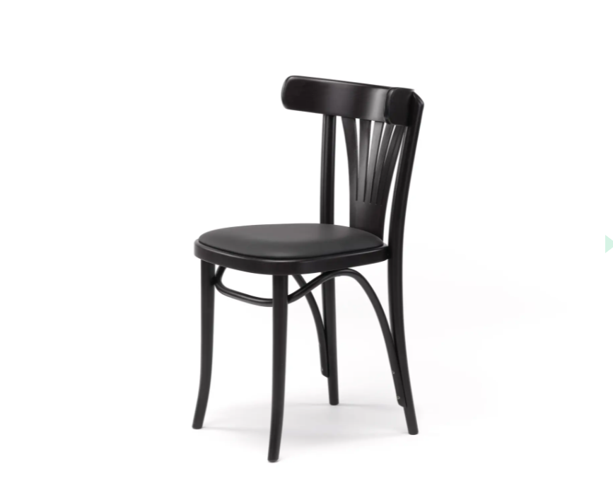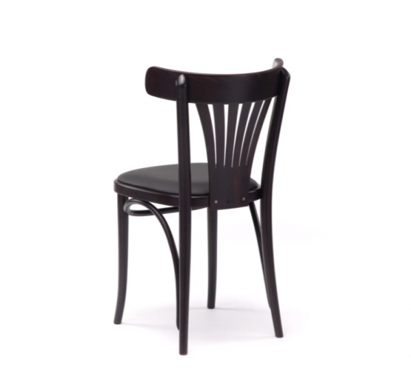 This chair was designed as early as 1885. Its distinct feature is the plywood fan filling the backrest. The upholstered version can be upgraded with decorative studs framing the seat and the top of the backrest.