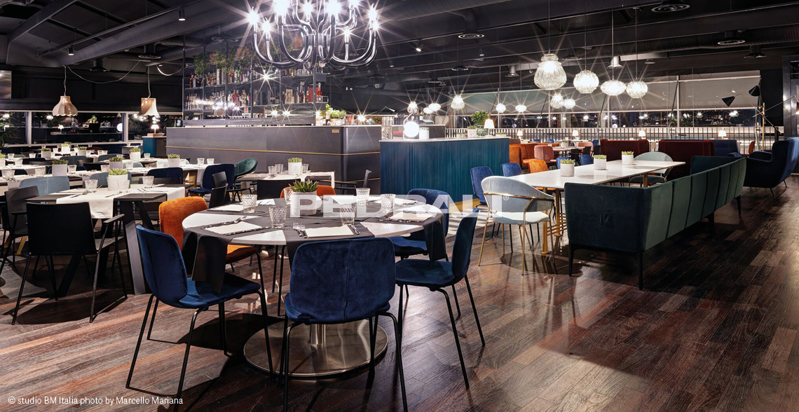 Babila collection is able to move along tradition and innovation with great agility. The strength of this collection is its simplicity and directness, to recall a timeless shape. Chair with technopolymer shell, upholstered in fabric or simil leather, and steel tube frame Ø16mm.