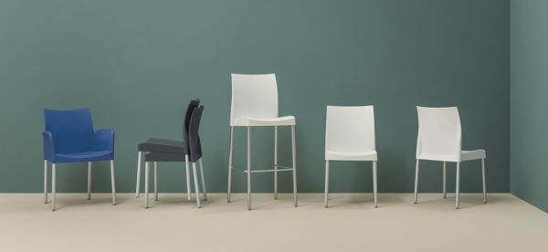 Ice collection has become a bestseller thanks to its versatility and soundness. The tubular legs in anodized aluminium Ø 28 are inserted into the gas injection moulding polypropylene shell, this combination of materilas makes the chair suitable for an array of varied furnishing needs, indoor and outdoor.