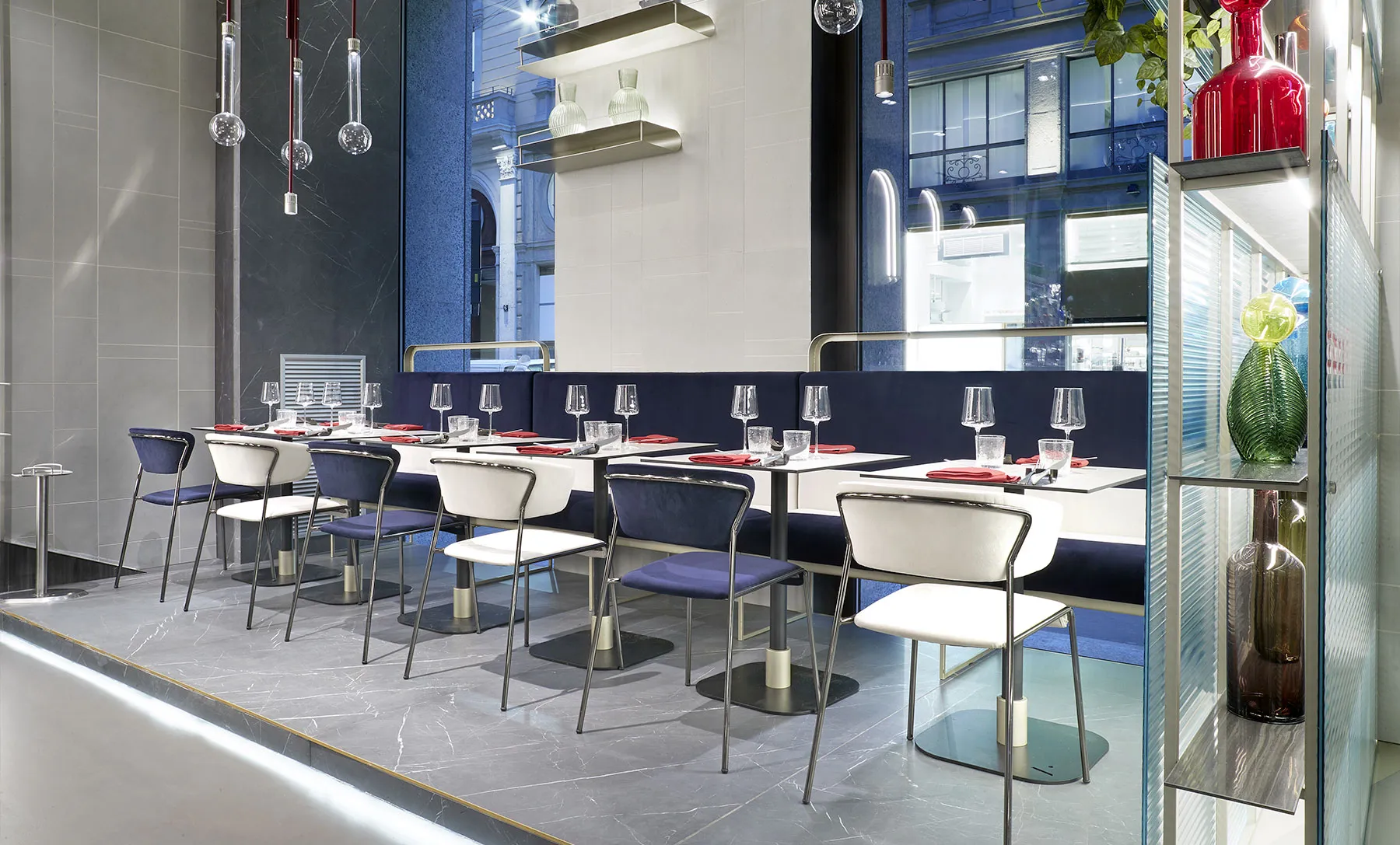 The Lisa chairs are inspired by the elegant interiors of the 1950’s and 60’s. The slimline tubular structure envelops and supports the backrest of both the armchairs and chairs, featuring a padded or wooden seat. Lisa fits effortlessly into any contract or household setting thanks to the use of sophisticated finishes and materials.