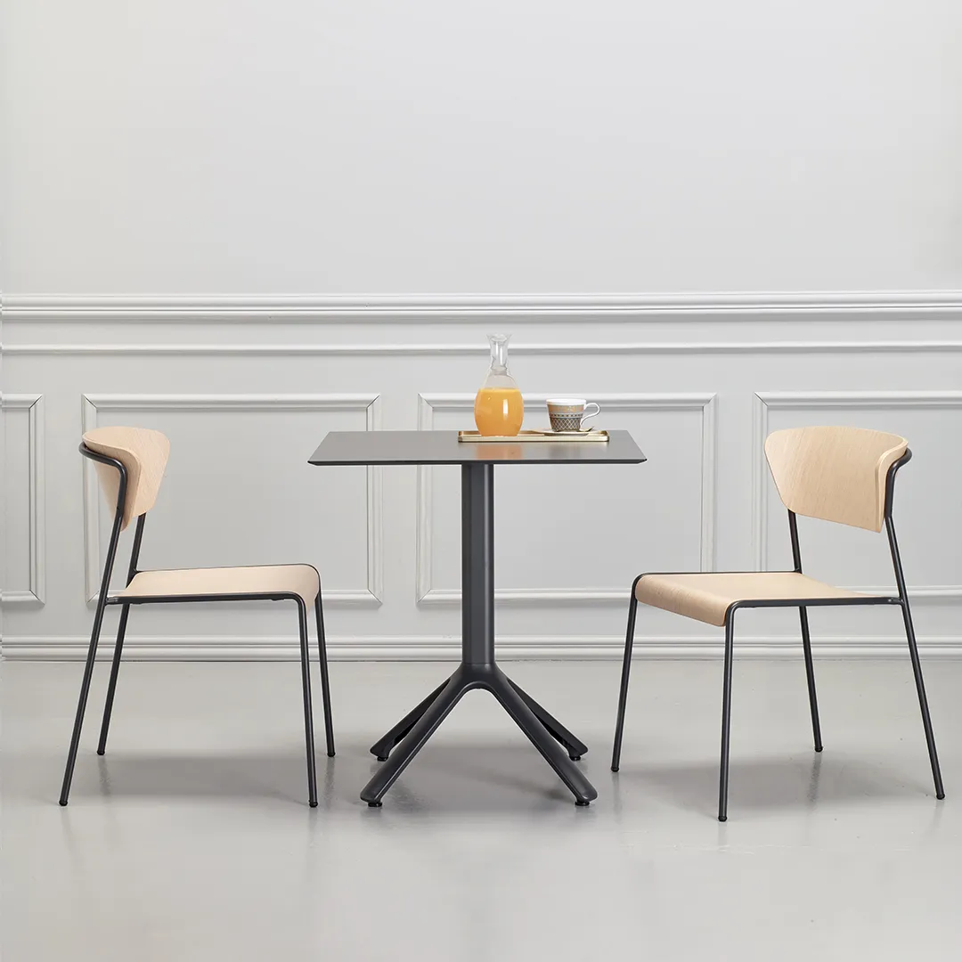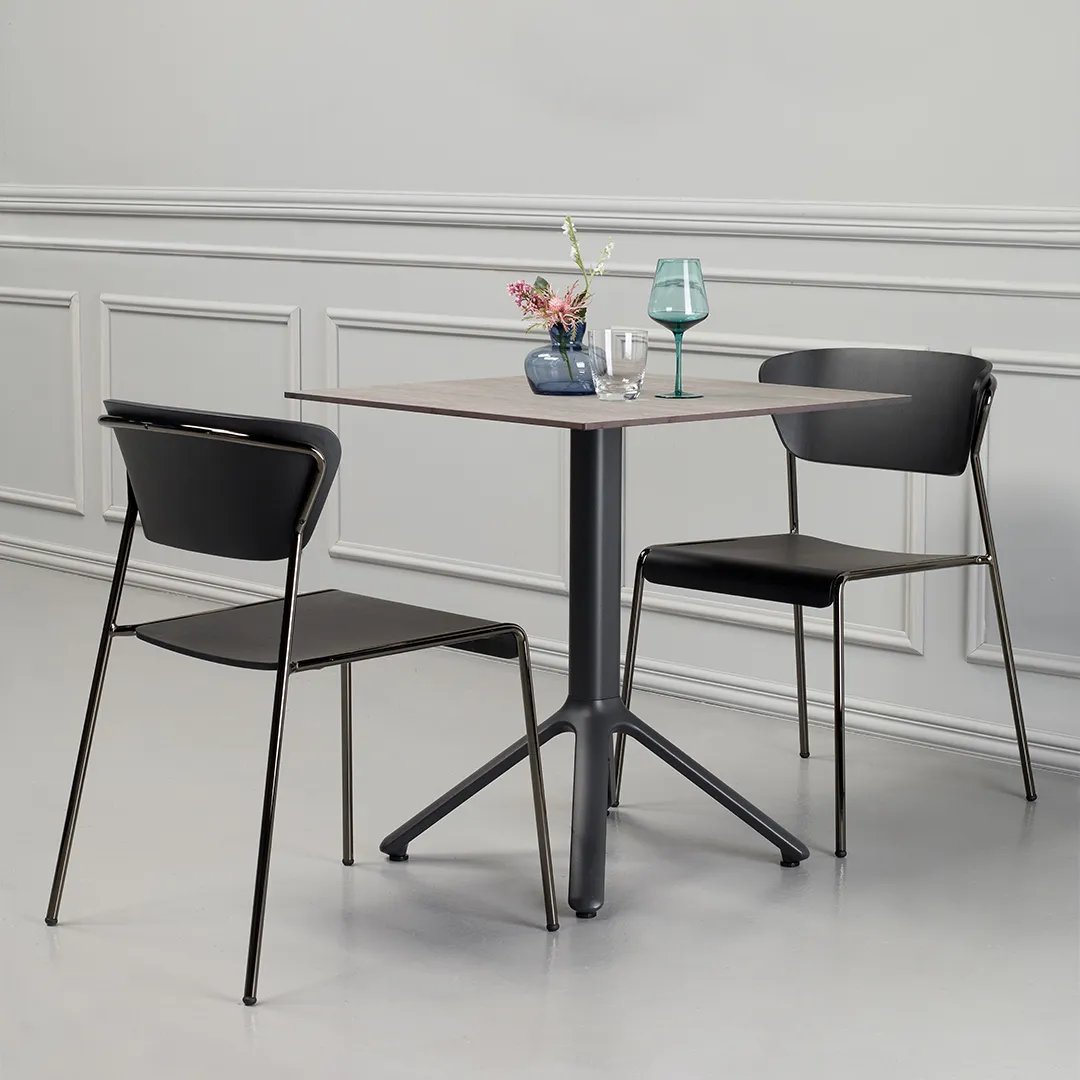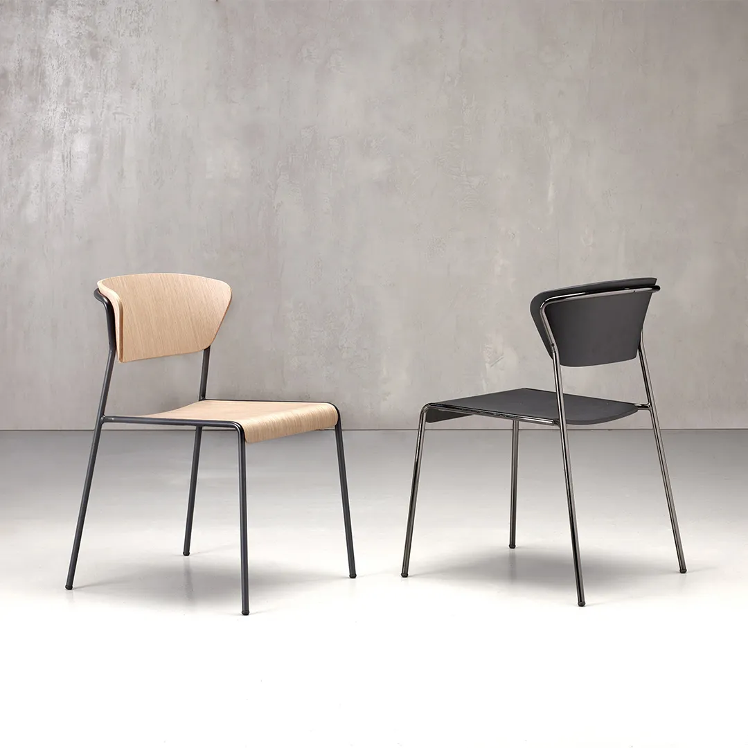 The Lisa chairs are inspired by the elegant interiors of the 1950’s and 60’s. The slimline tubular structure envelops and supports the backrest of both the armchairs and chairs, featuring a padded or wooden seat. Lisa fits effortlessly into any contract or household setting thanks to the use of sophisticated finishes and materials.