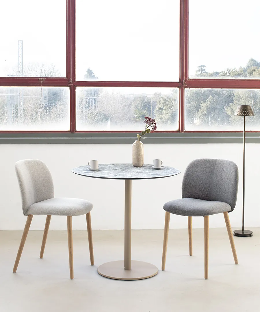 The visual reference to the world of nature and its harmonious lines and the ecological theme find synthesis in an easily recognisable shape: this is the signature of the Mentha chairs, the product of Archirivolto’s first collaboration with S•CAB. Mentha is a fresh, practical, comfortable, and welcoming seat, just as its name suggests. The upholstered version is perfect for indoor environments; the minimalist technopolymer version is suitable for both indoor and outdoor spaces. Of no less importance is the material: certified recycled plastic, an advanced material increasingly adopted by the company.