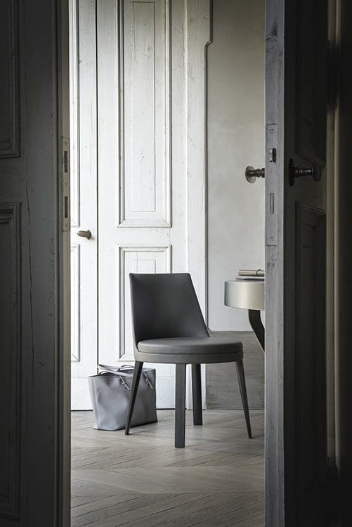 The Ponza is padded in flame-retardant polyurethane foam and upholstered in leather or fabrics from our collection. The legs supporting the back and seat are made from open-pore lacquered ash wood.The Ponza collection is the fruit of research on the subtle relationship between the softness of the leather and the warmth of the wood, narrated through a clean and simple style. The care and attention to detail define this evocative range of chairs, lounge chairs, pouffe and stool.