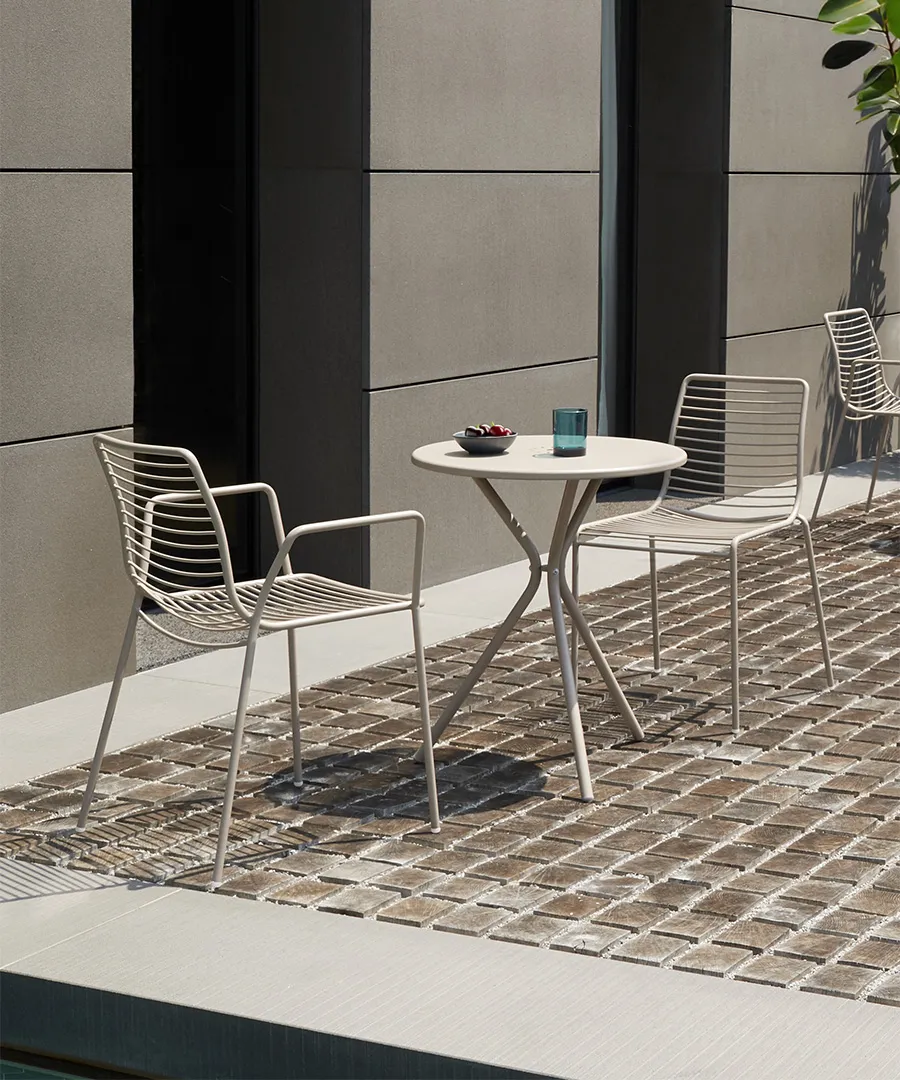The Summer collection, with its clean lines and summery style, includes tables of different heights and multi-coloured stackable chairs. The look makes it a perfect addition to any furnishing style, from your home patio to the most exclusive contract settings. A virtually universal chair with its clean, simple lines.