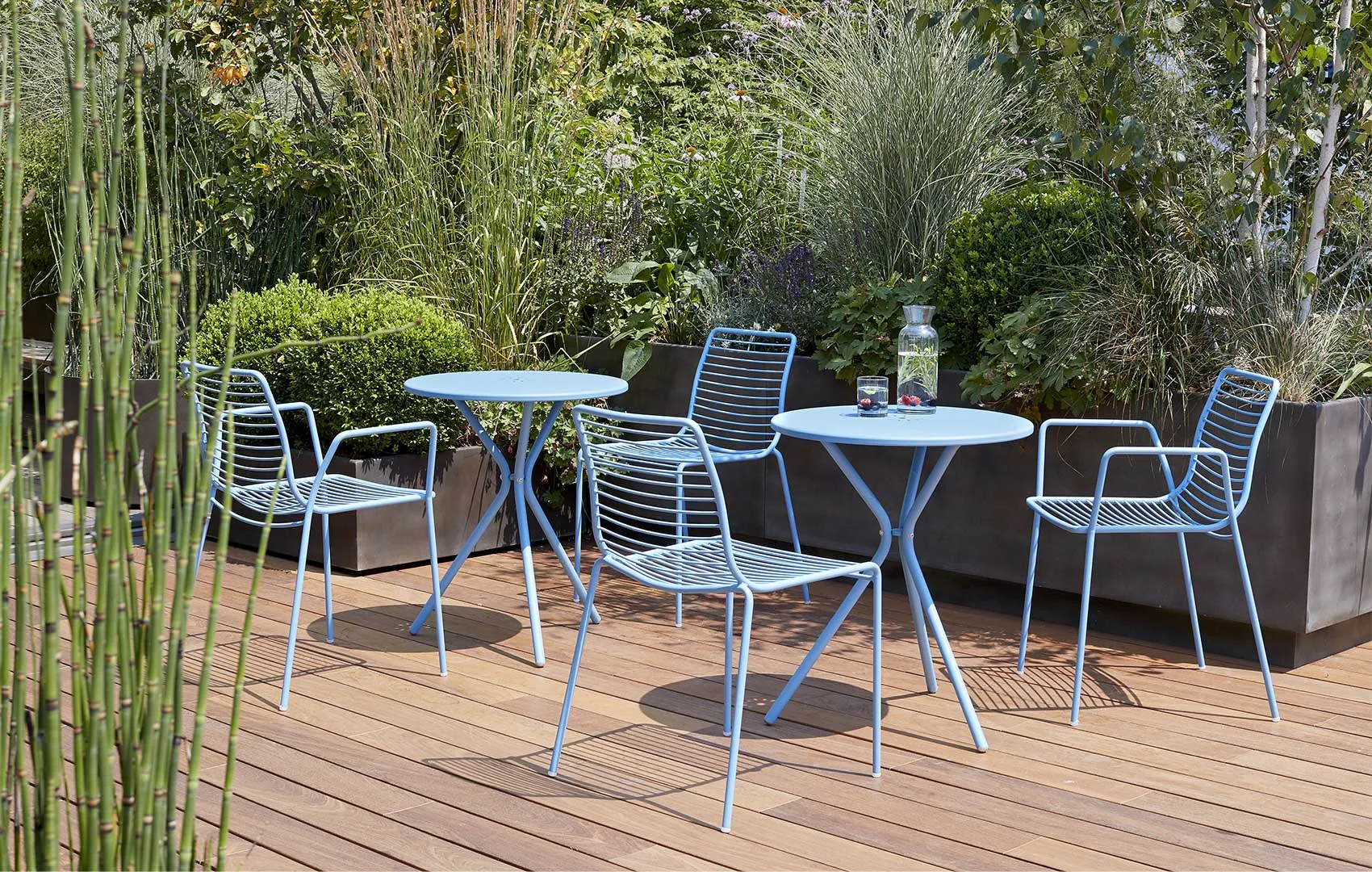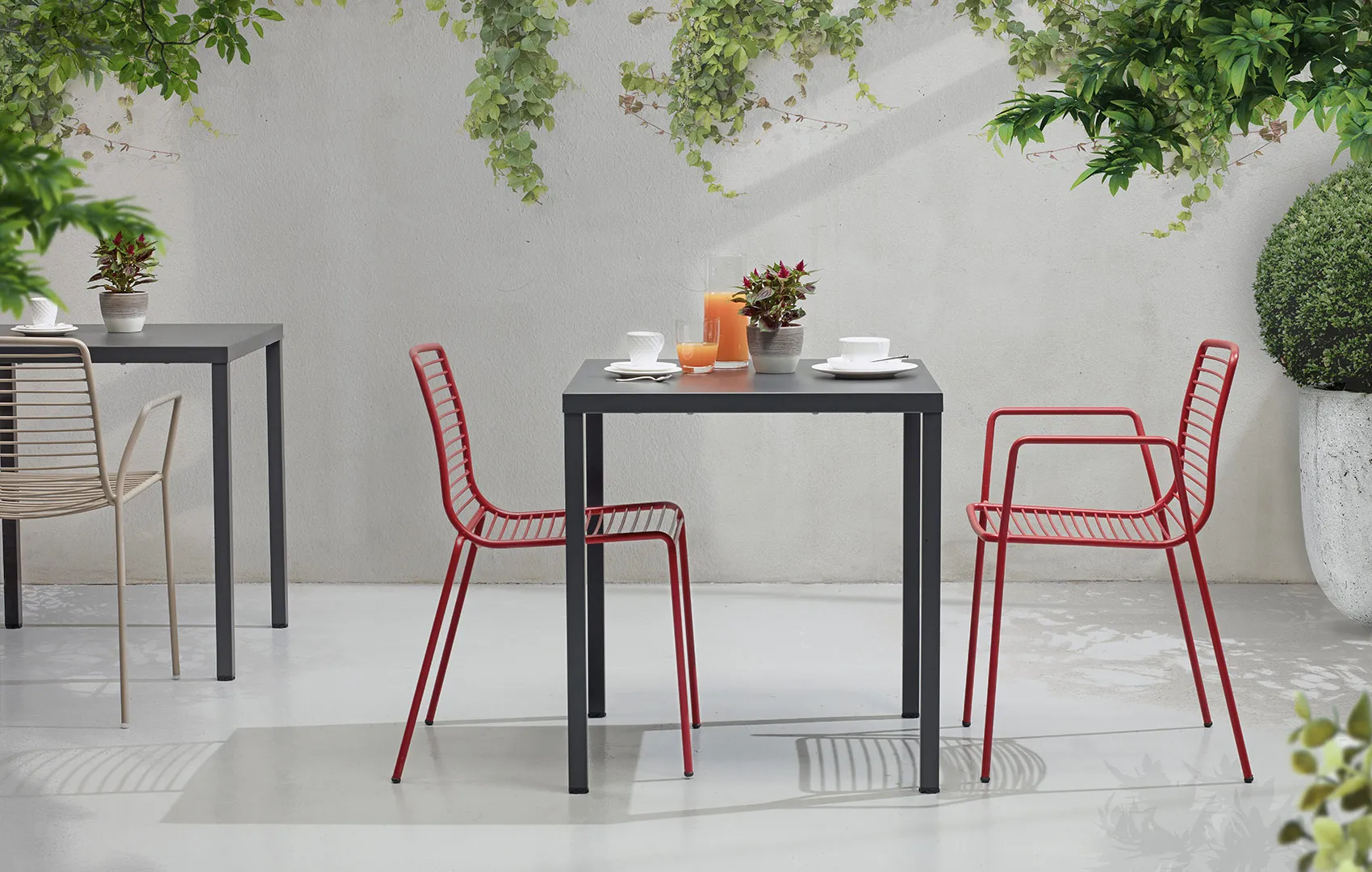 The Summer collection, with its clean lines and summery style, includes tables of different heights and multi-coloured stackable chairs. The look makes it a perfect addition to any furnishing style, from your home patio to the most exclusive contract settings. A virtually universal chair with its clean, simple lines.