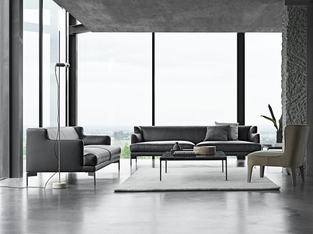 Set of side tables with steel lacquered tubolar base and marble or concrete effect top.