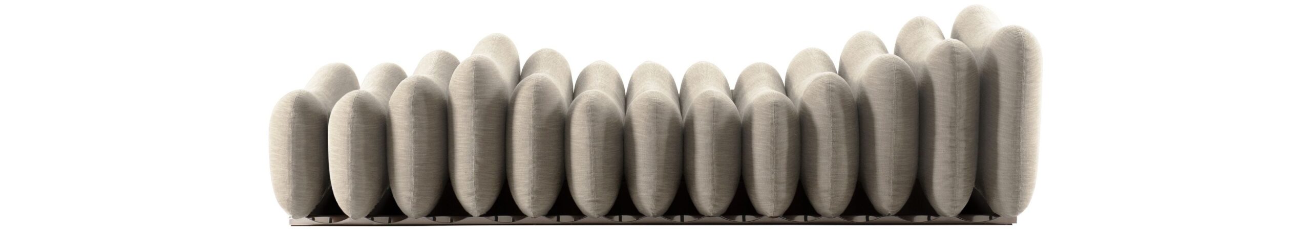 Modules with unusual shapes give life to original seating configurations where aggregation and variability become the protagonists. Additional System is a 1967 project by Joe Colombo re-proposed today by Tacchini respecting the original spirit: a modular system with timeless charm, still "futuristic" today 50 years later. Cushions of six different sizes, inspired by the ergonomic studies of the 1960s, come together in dynamic and flexible combinations created by varying the number of elements and the way in which they are positioned. Additional System is available in armchair, pouf and daybed versions.