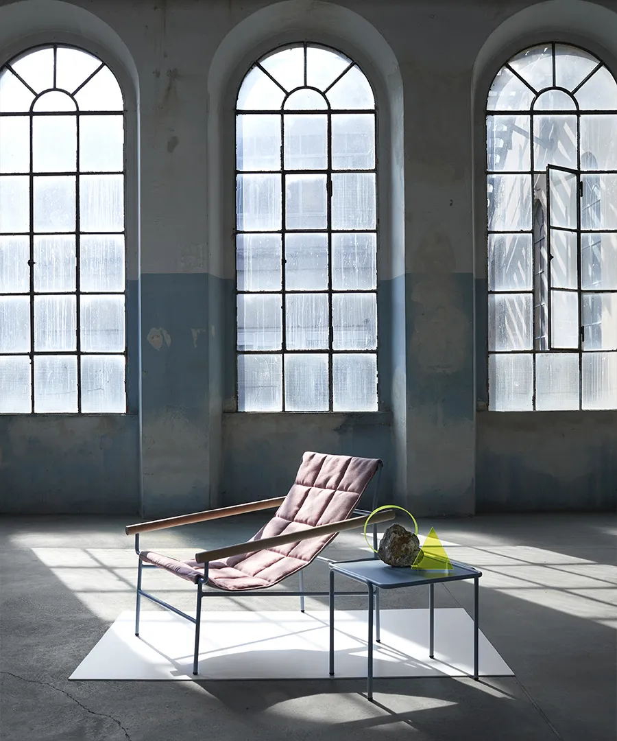 The new DRESS_CODE armchair is inspired by the canons of haute couture, playing with the combinations of colours between structure and seat, with the indoor and outdoor fabrics patterns, and with their upholstery: in addition to the smooth and flat fabric version, there is a quilted version in big squares, and a padded, wave-shaped version. The quilting and padding are both an aesthetic element and a source of greater comfort.