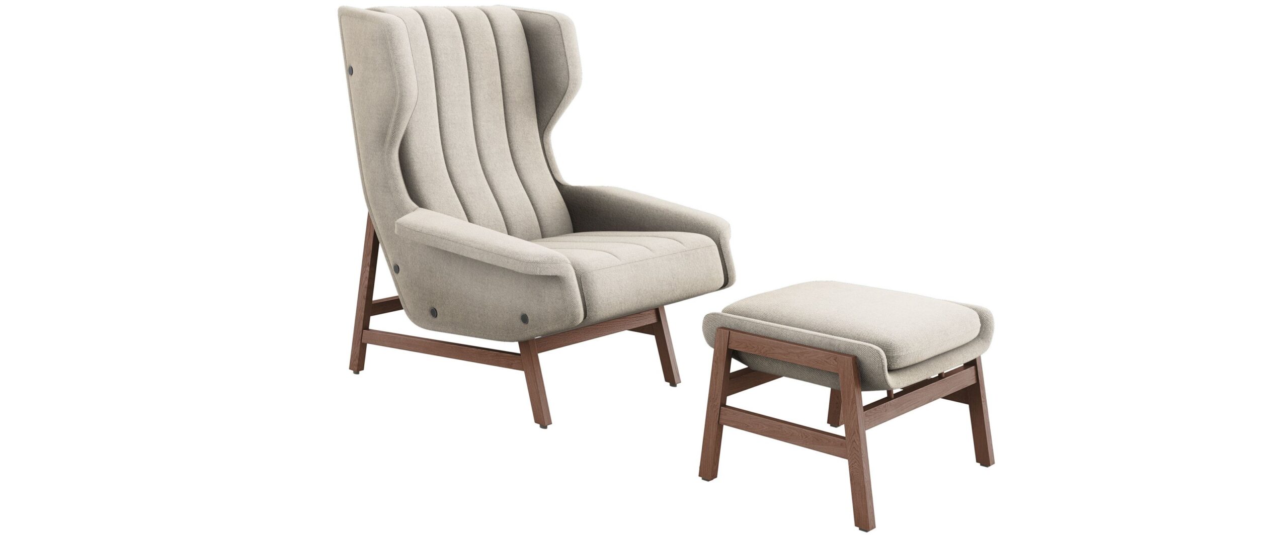 A reissue of an original 1957 design by Gianfranco Frattini, the shape and spirit of Giulia are as contemporary today as ever. The armchair with footrest is the perfect combination of beauty, comfort and harmony. The shell, which echoes and renews the shapes of a classic reading chair, stands on a wooden base, essential in defining the aesthetic of this design classic, which Frattini aptly dedicated to the wife of his teacher and guide, Gio Ponti.