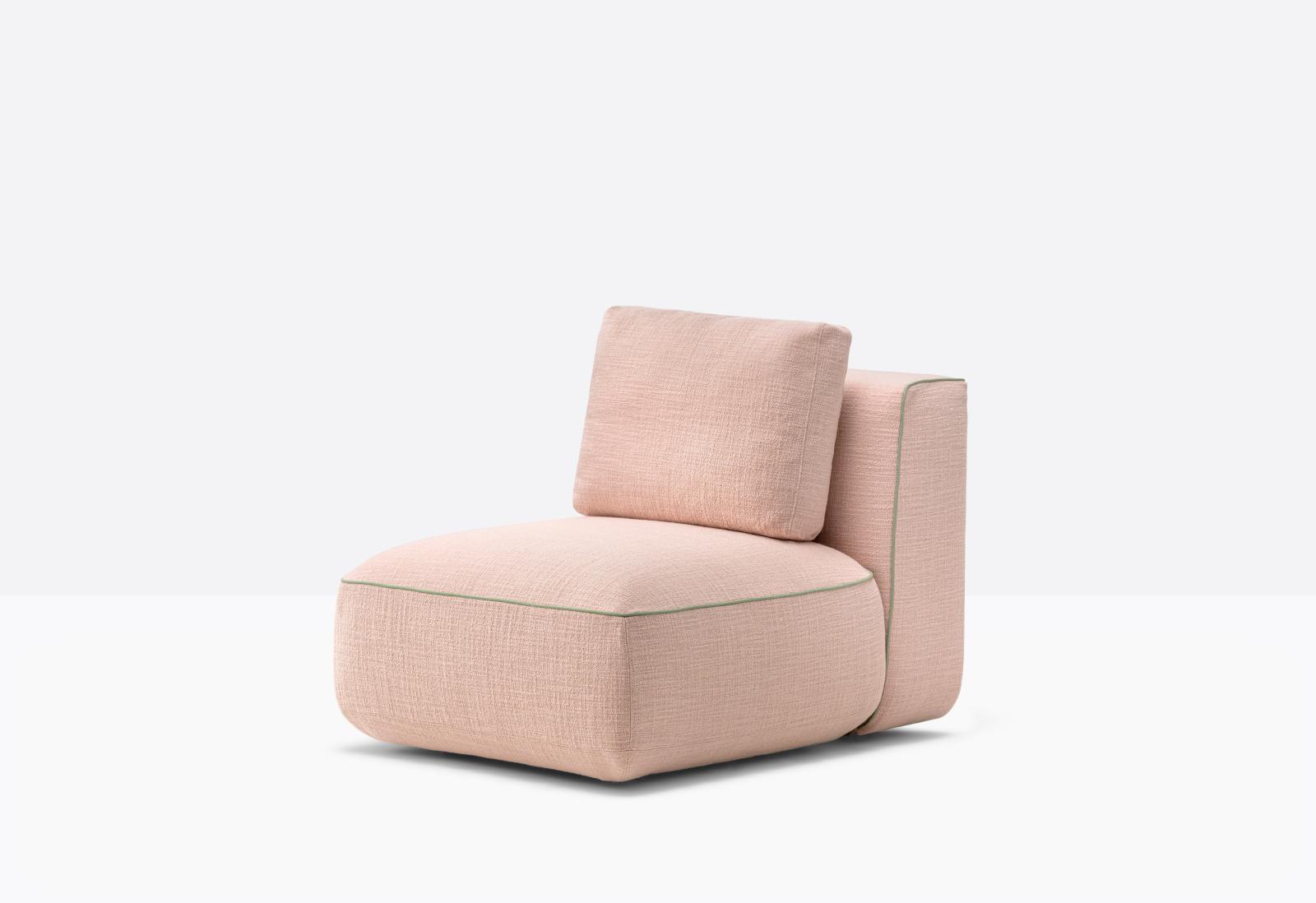 Jeff is a contemporary modular sofa system designed as a set of miniature architectures, skilfully combined to create multiple modular and reconfigurable scenarios. The distinguishing feature of Jeff is its harmony of volumes: the squared backrest pairs with a delicate seat to soften and give balance to the whole structure. A linear module made from a highly comfortable and non-deformable polyurethane foam, resting on a plywood platform covered in fabric that is raised 3 cm off the ground by small feet. The backrest cushion further contributes to the sofa’s overall comfort, providing effective lumbar support. The lining is removable so that it can be cleaned and maintained with ease. A system of connecting hooks makes it possible to dismantle and reconfigure the sofa, customising it and adapting it according to the evolution of the space.