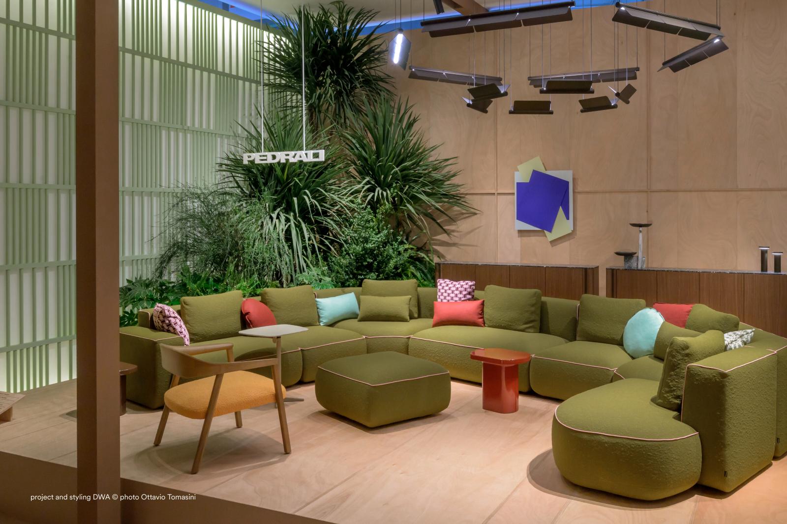 Jeff is a contemporary modular sofa system designed as a set of miniature architectures, skilfully combined to create multiple modular and reconfigurable scenarios. The distinguishing feature of Jeff is its harmony of volumes: the squared backrest pairs with a delicate seat to soften and give balance to the whole structure. A 90° corner unit featured by an oblique backrest, made from a highly comfortable and non-deformable polyurethane foam, resting on a plywood platform covered in fabric that is raised 3 cm off the ground by small feet. The backrest cushion further contributes to the sofa’s overall comfort, providing effective lumbar support. The lining is removable so that it can be cleaned and maintained with ease. A system of connecting hooks makes it possible to dismantle and reconfigure the sofa, customising it and adapting it according to the evolution of the space.
