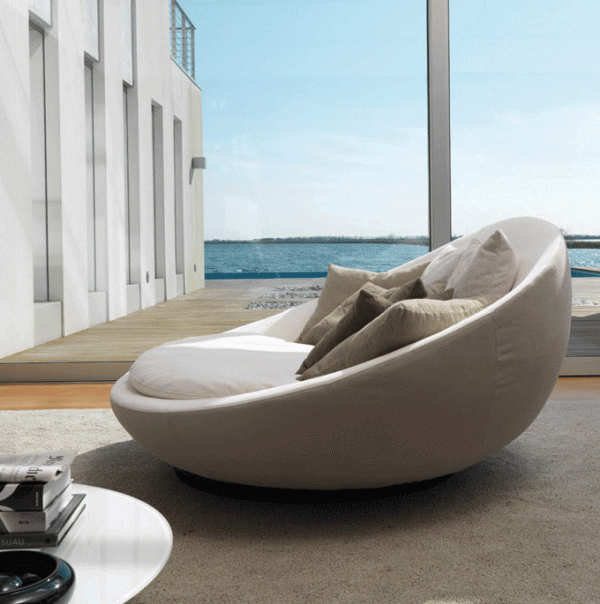An enveloping, soft and fun-loving swivel island made for exquisite relaxation. The version covered with two-tone fabric is decidedly original.In addition to being an internationally-renowned iconic model, Lacoon island can be harmoniously combined with the entire Désirée collection.