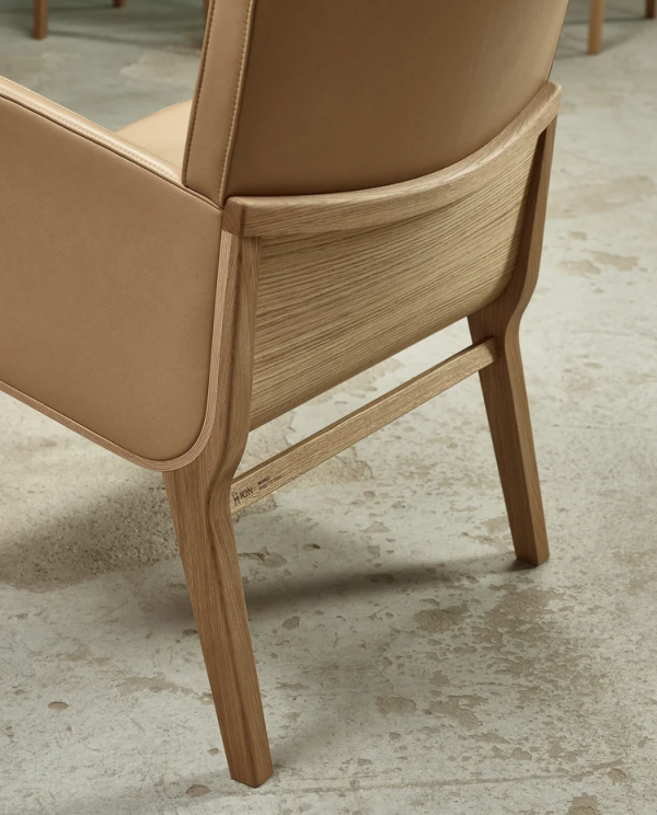 Hand-smoothed oak, fine natural leather, precise sewing, pocket springs in the seat and ergonomics tested over a long period of time place Moritz among the premium products in the TON portfolio. The whole set includes also a chair, armchair and a barstool.