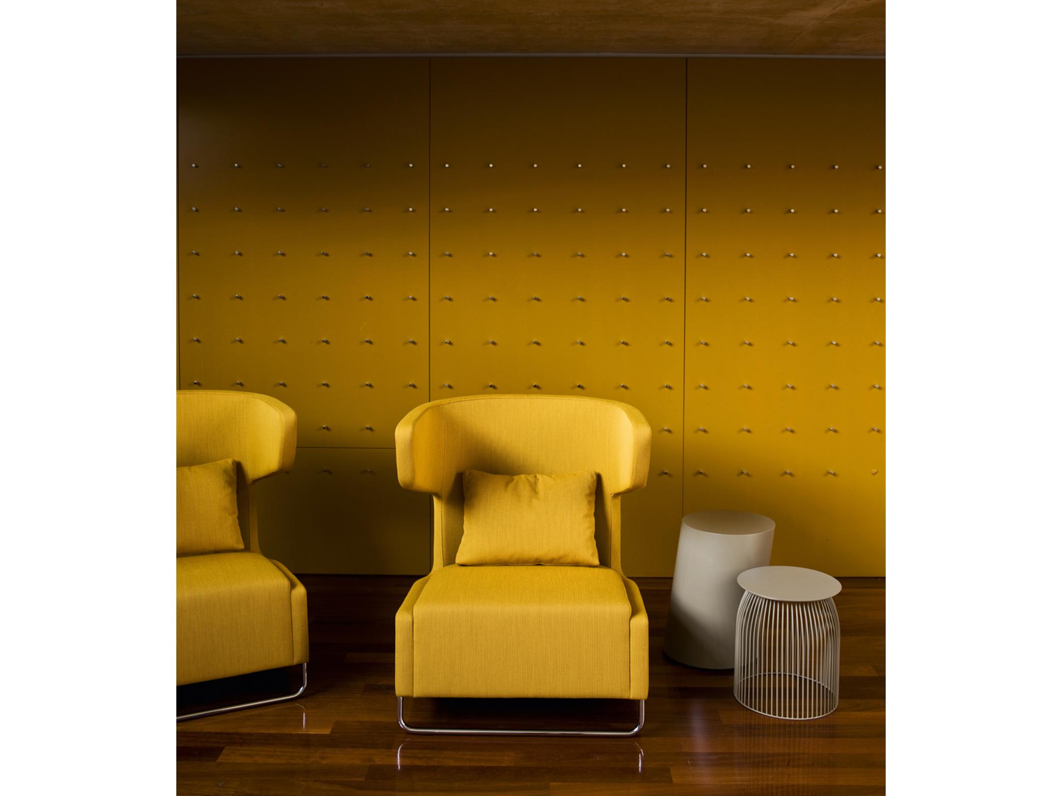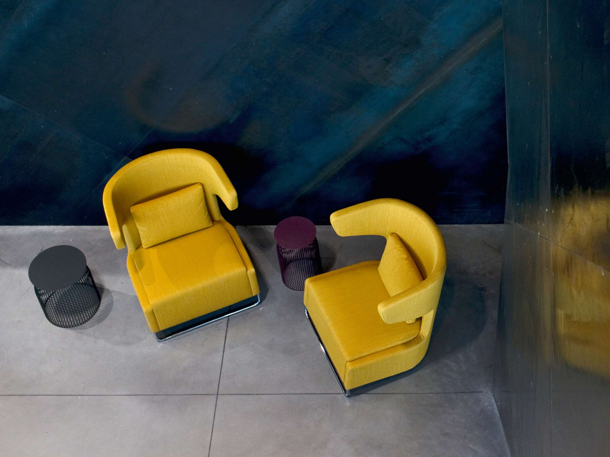 There is the appealing air of a whimsical old lady about the Mrs Buffy collection of small and large armchairs and sofas with substantial shapes.The headrest and the slightly inclined form make it naturally comfortable and dynamic, so it is perfect for conversation.