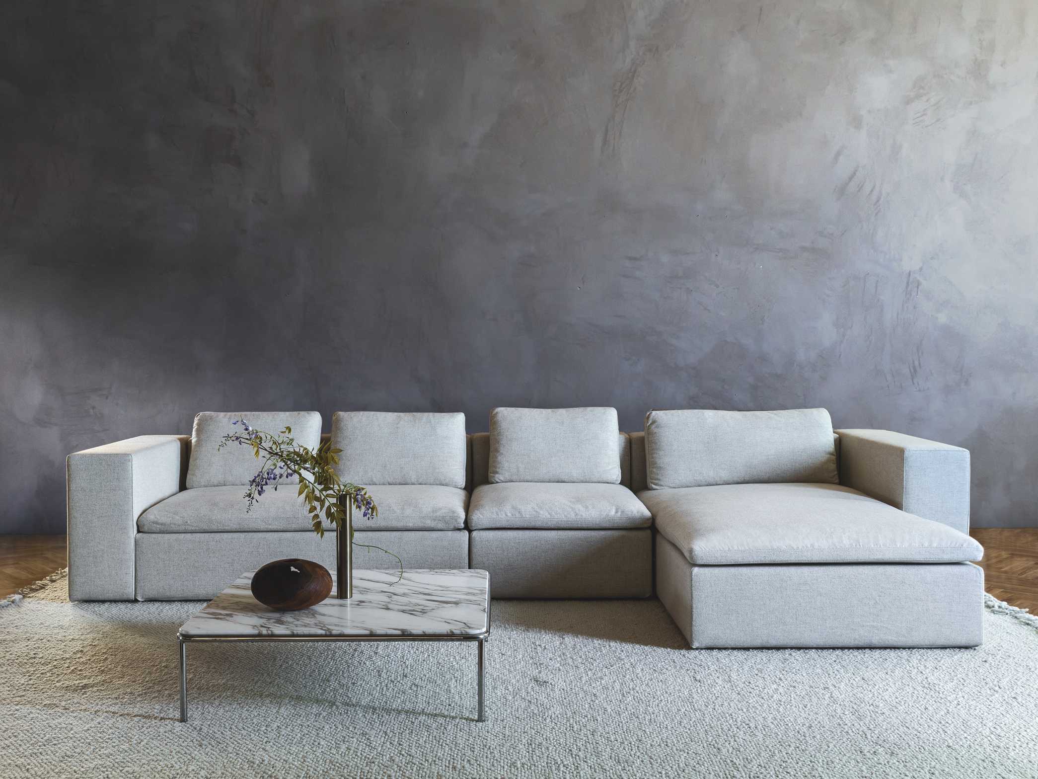 Like pieces in a puzzle, the 36 items in this modular range can be joined together in countless combinations.There is a tailored solution to every need and the comfort levels are unparalleled because both the seats and the backrests are filled with goose feathers.