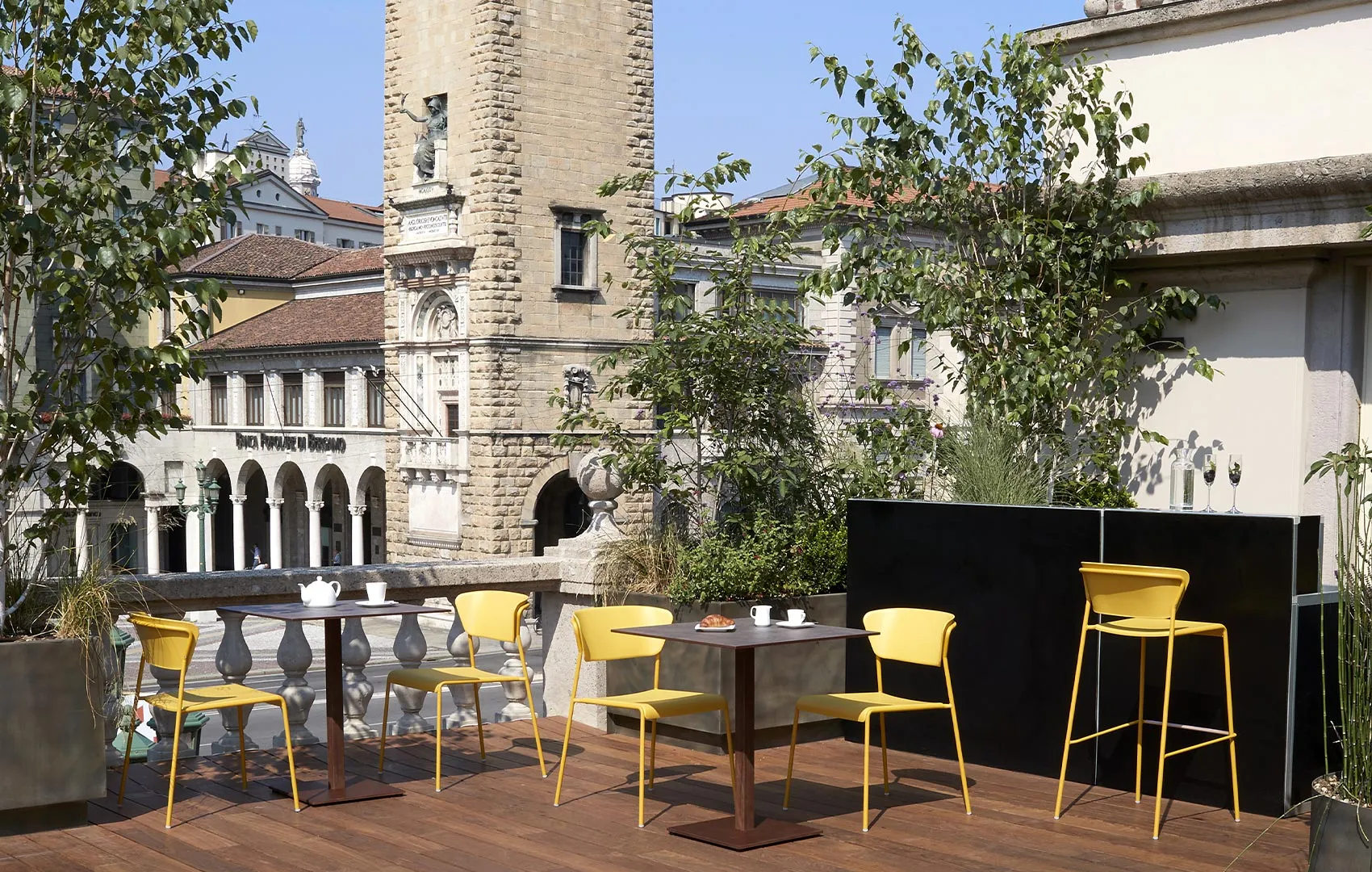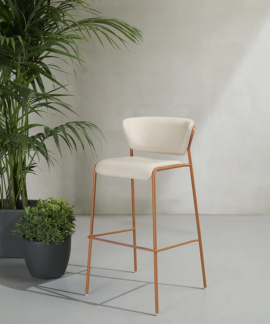 Its elegance always draws attention. In this version, Lisa has a technopolymer seat and backrest. Soft shapes that convey a pleasant sense of richness and solidity; the tactile quality in the finishing of the surfaces and the choice of contemporary colours make the chair and barstool habitués of the most fashionable contract environments.