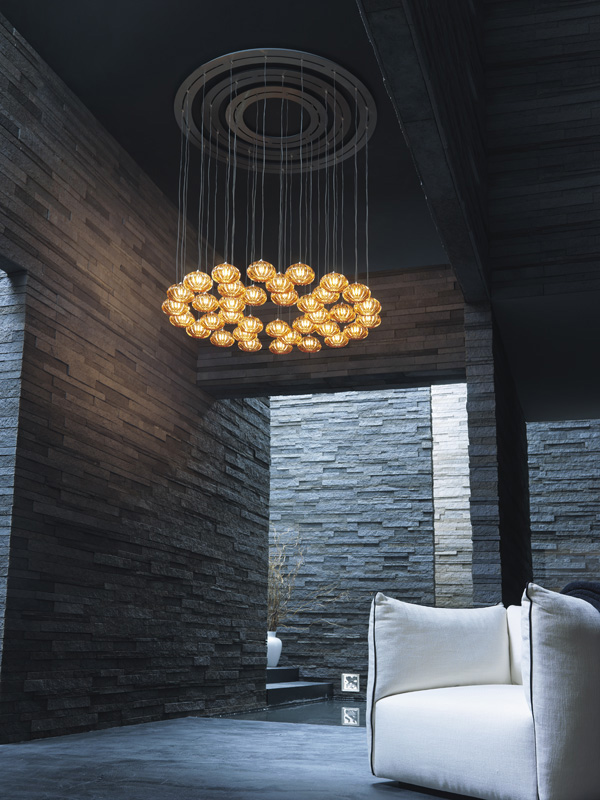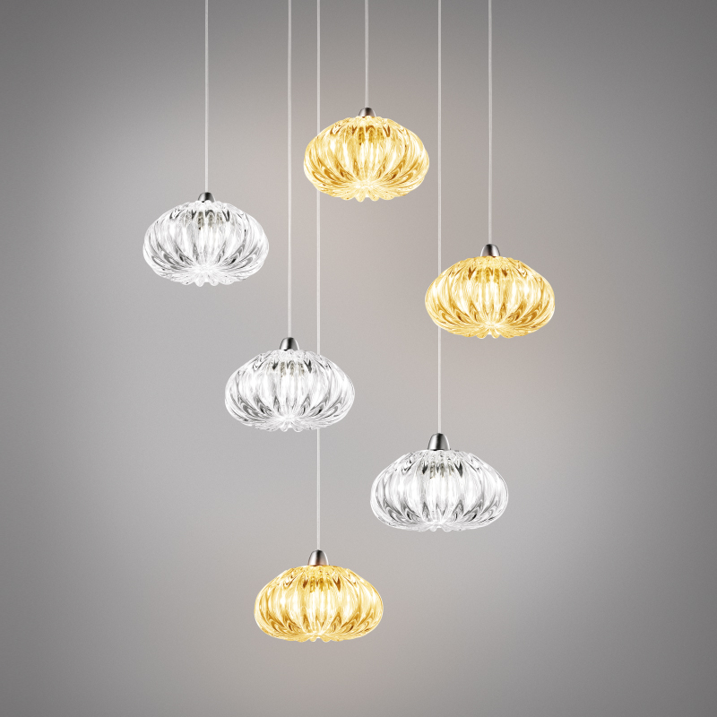 The Diamante collection is the result of an exclusively artisanal process. The artisan manufacture is enhanced by the new LED version. The suspensions, presented as a cluster or individually, give the room a refined touch.