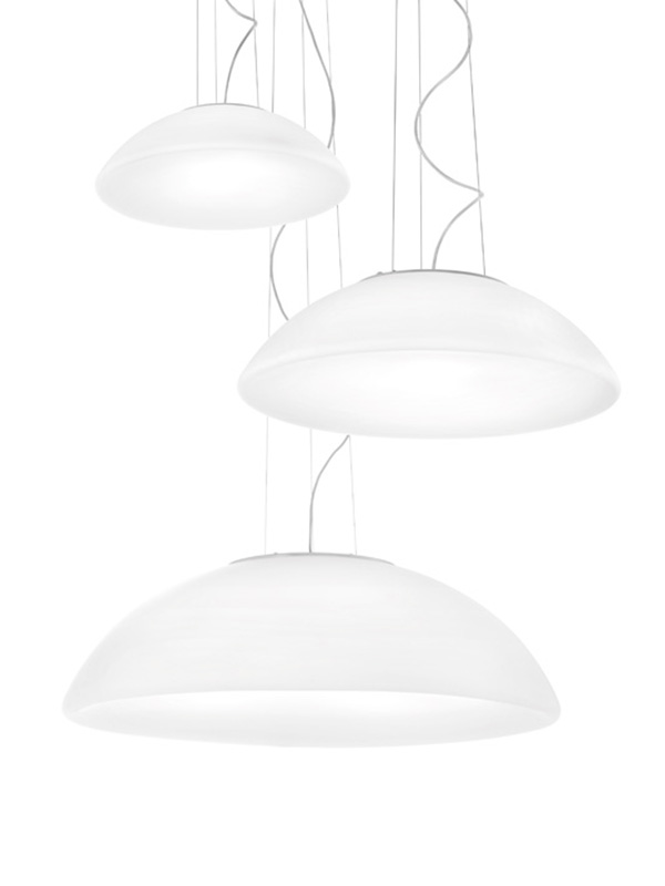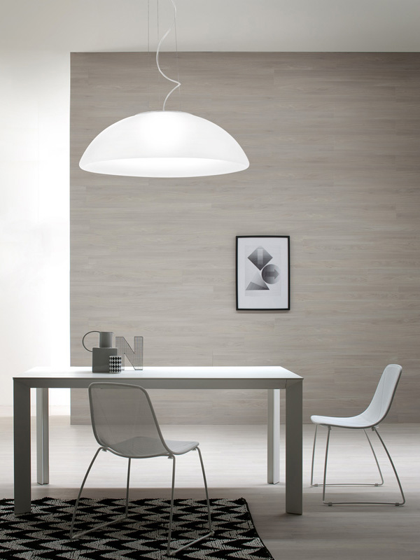 Available as pendant, ceiling or wall lamp. It is the perfect answer for those looking for a large lamp. The diffuser, especially in the bigger size, offers a large lighting surface area despite a minimalist metal frame.