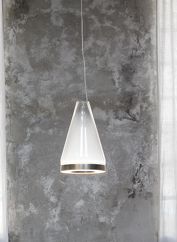 The LED source illuminates the surface and the glass at the same time, bringing towards the ceiling a part of the soft-colour light.