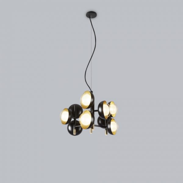 Collection of neo-vintage metal lamps with a double-sided diffuser in borosilicate glass. The metal domes (one internal and the other one external) have the internal side with different colors or finishing: they can be painted or finished in polished brass and bright copper, thus to create different textural combinations. The collection presents hanging lamps, floor lamp, table lamp, wall and ceiling. The hanging and wall lamp version are provided with a further G9 source located in the lower part of the lamp.