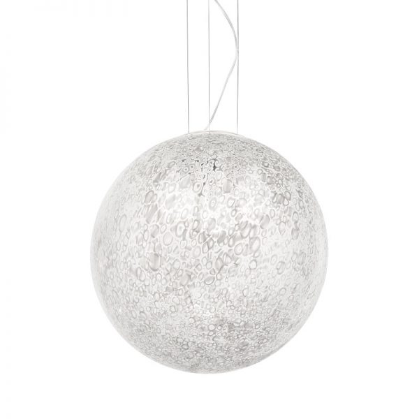 Rina is inspired by the dandelion, of which it recalls the pappus, thanks to the light texture of the surface, made with the traditional technique of murrine. It is available in different sizes that can be combined in a wide range of installations.