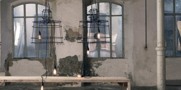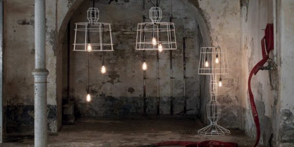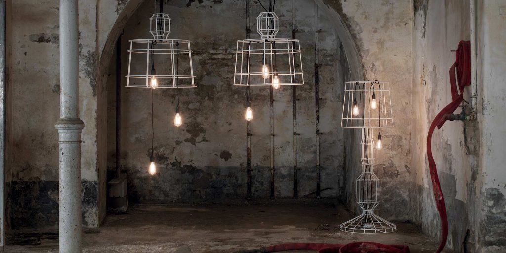 Structure in construction site’s ribbed rebar, painted whiteLight Source: Incandescent and halogen, LEDmax 3 x 77w E27ø60 x h.60 cm