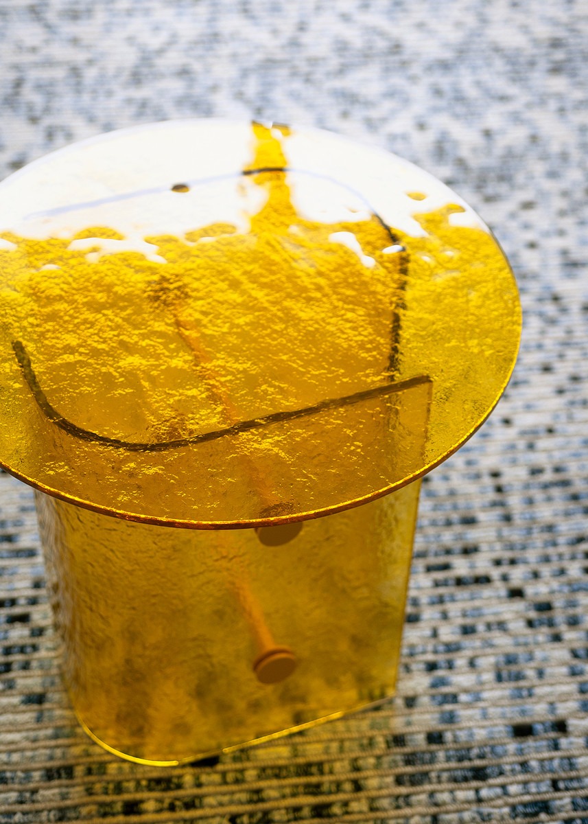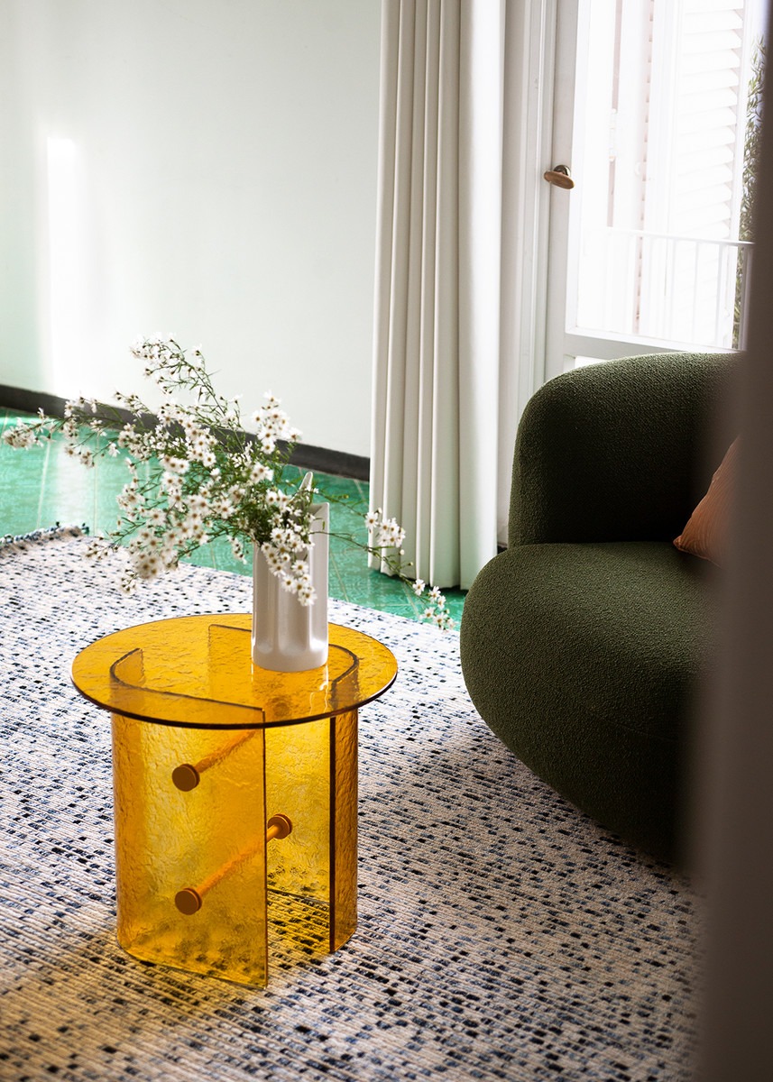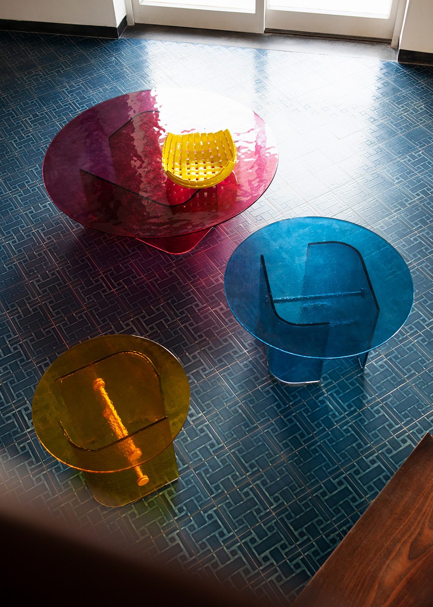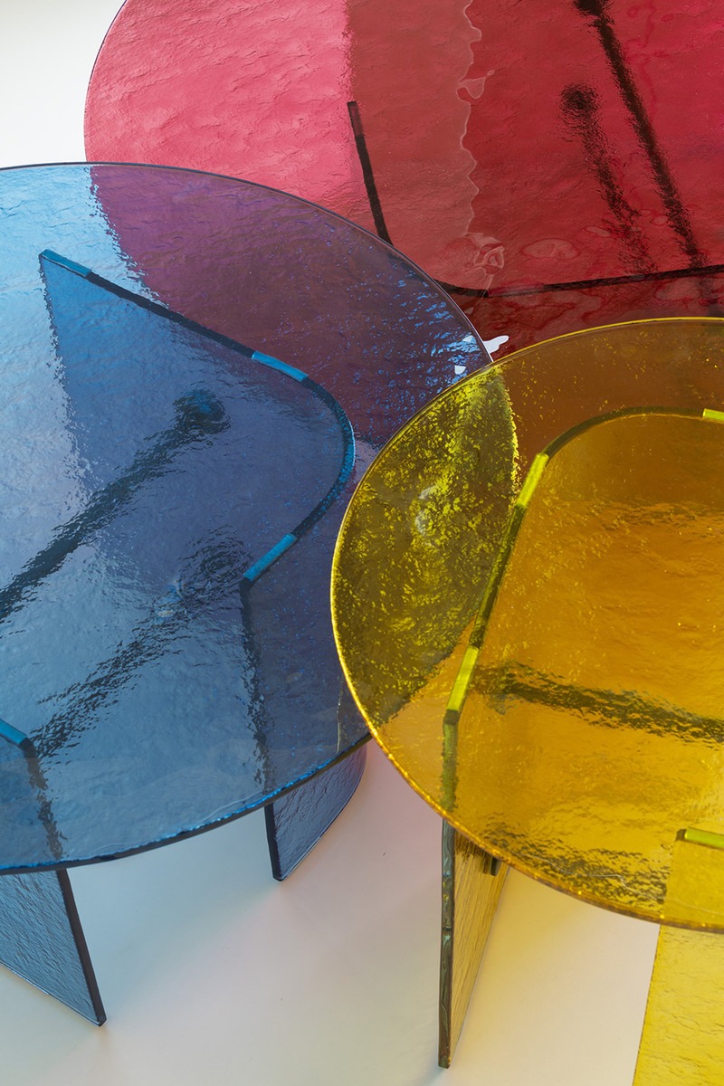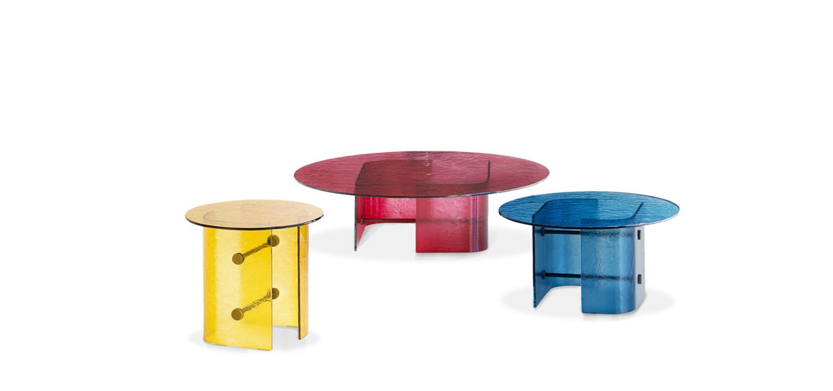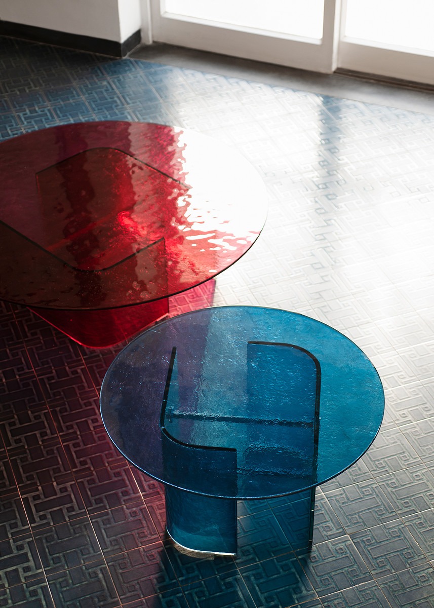 Double L Glaze coffee tables are presented in a new and colorful all-glass variant.