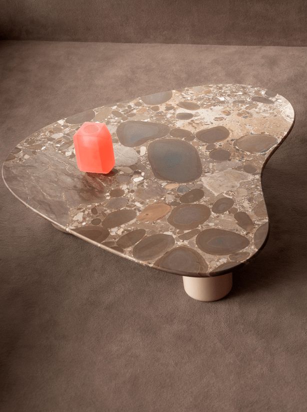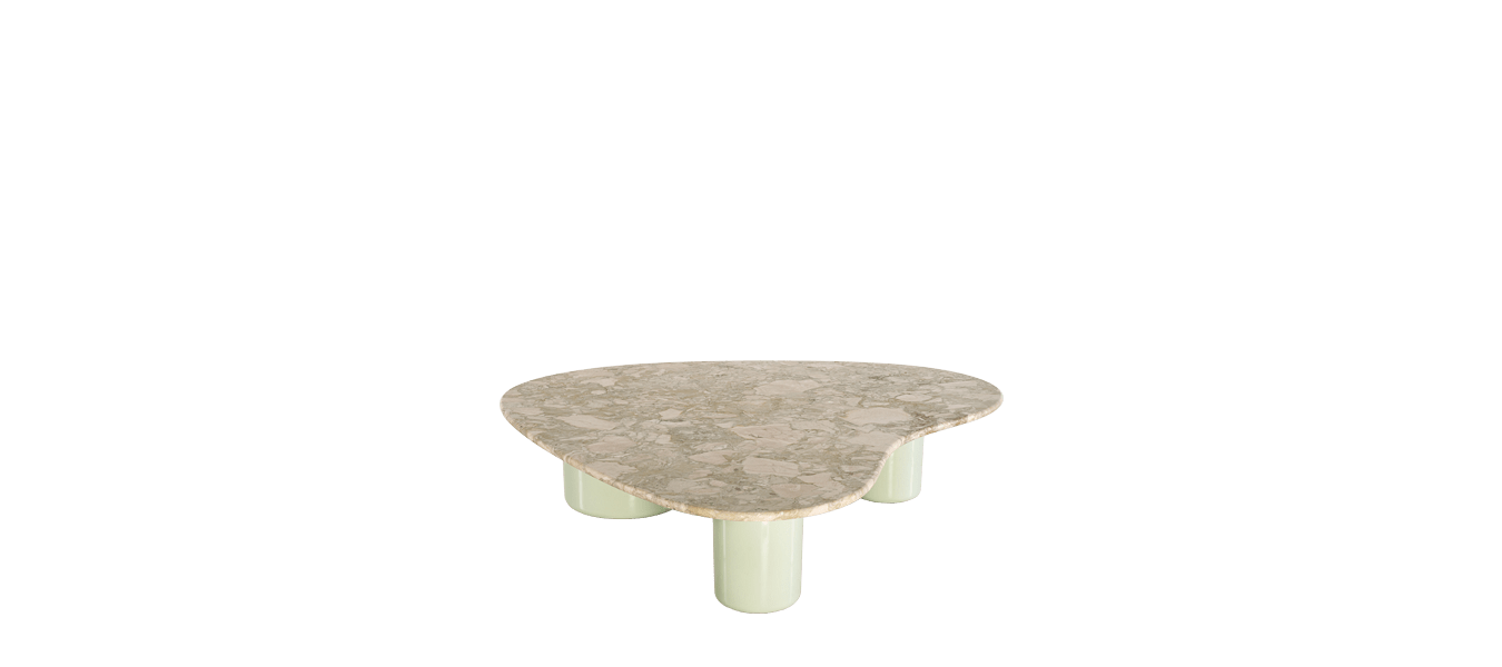 Designed by Studiopepe and inspired by the rationalist architecture of Lina Bo Bardi — particularly the famous openings with a red background for the SESC Pompeia in São Paulo — Gian & Pan is a collection of side tables that blends materials and colours to enhance and accompany the irregular shapes of the surfaces. Marble and concrete are shaped into organic and sinuous structures, creating unexpected contrasts and fascinating interplay between light and material. The tables are freely configurable, with options for the top — available in three types of marble distinguished by their tones and veining — and the legs in concrete, available in three glossy colours.