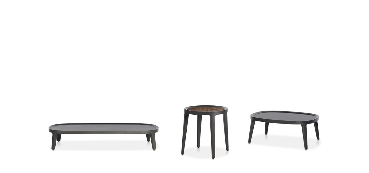 Wing chair, sofa, pouf, and coffee tables compose the Spring collection.The coffee tables, available in three sizes and shapes, have a solid ash wood structure and top in three versions: ash, marble or or tempered back-painted glass with wooden frame.