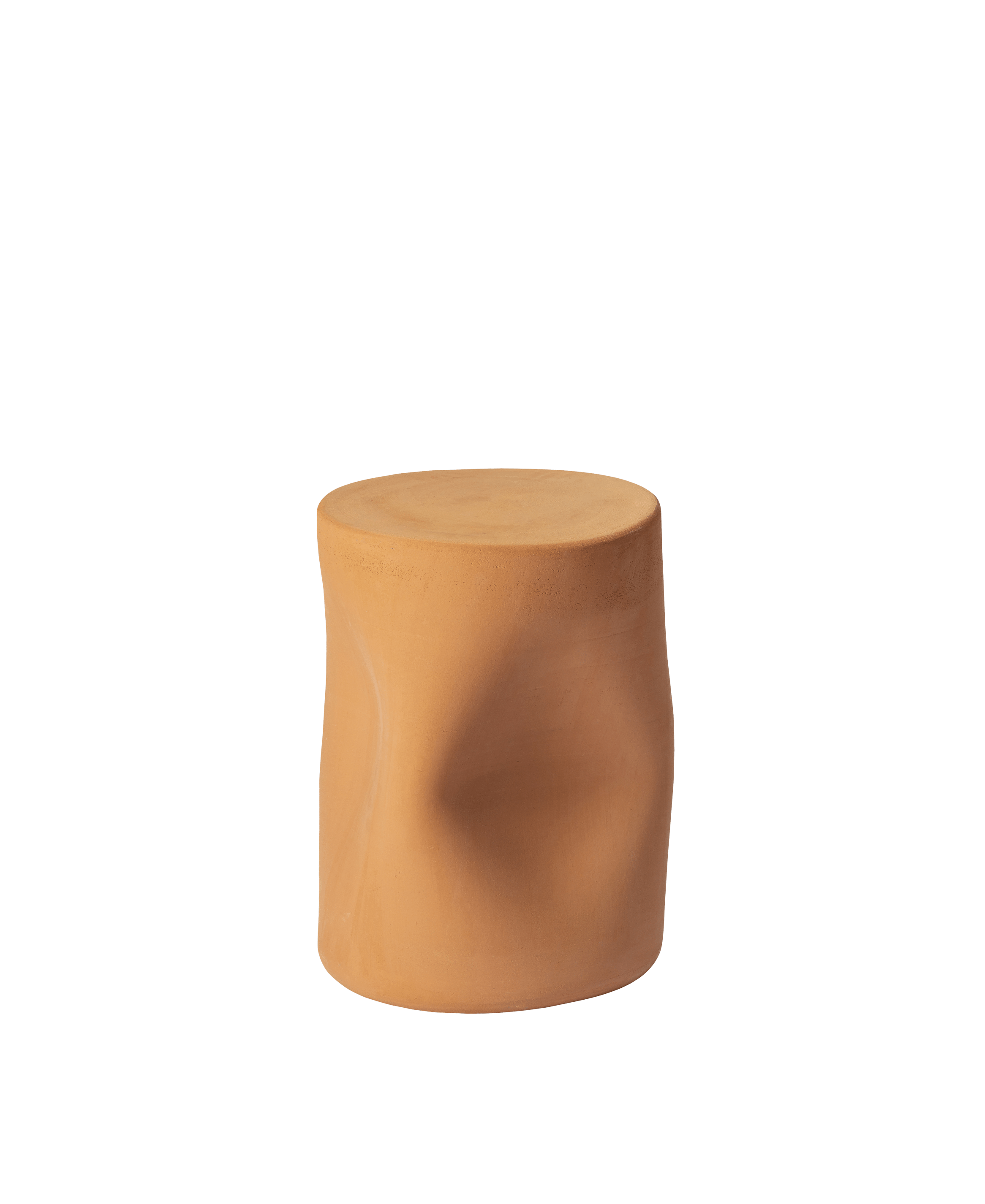 The pillow impressionToblo expresses the physicality of its material through its form: a terracotta cylinder thus becomes a table, perfectly smooth except for its softly dented sides. Toblo captures the moment before firing, the instant when the material has already reached its final form in the hands of the artisan, yet is still fresh and malleable. A neat trick to evoke and preserve that same softness forever.