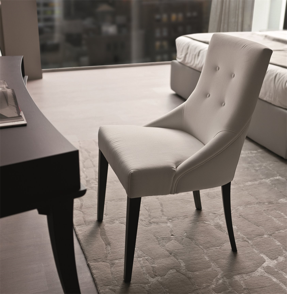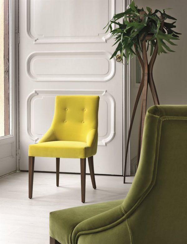 Chair with frame in solid ash and cover in the fabrics of the collection.