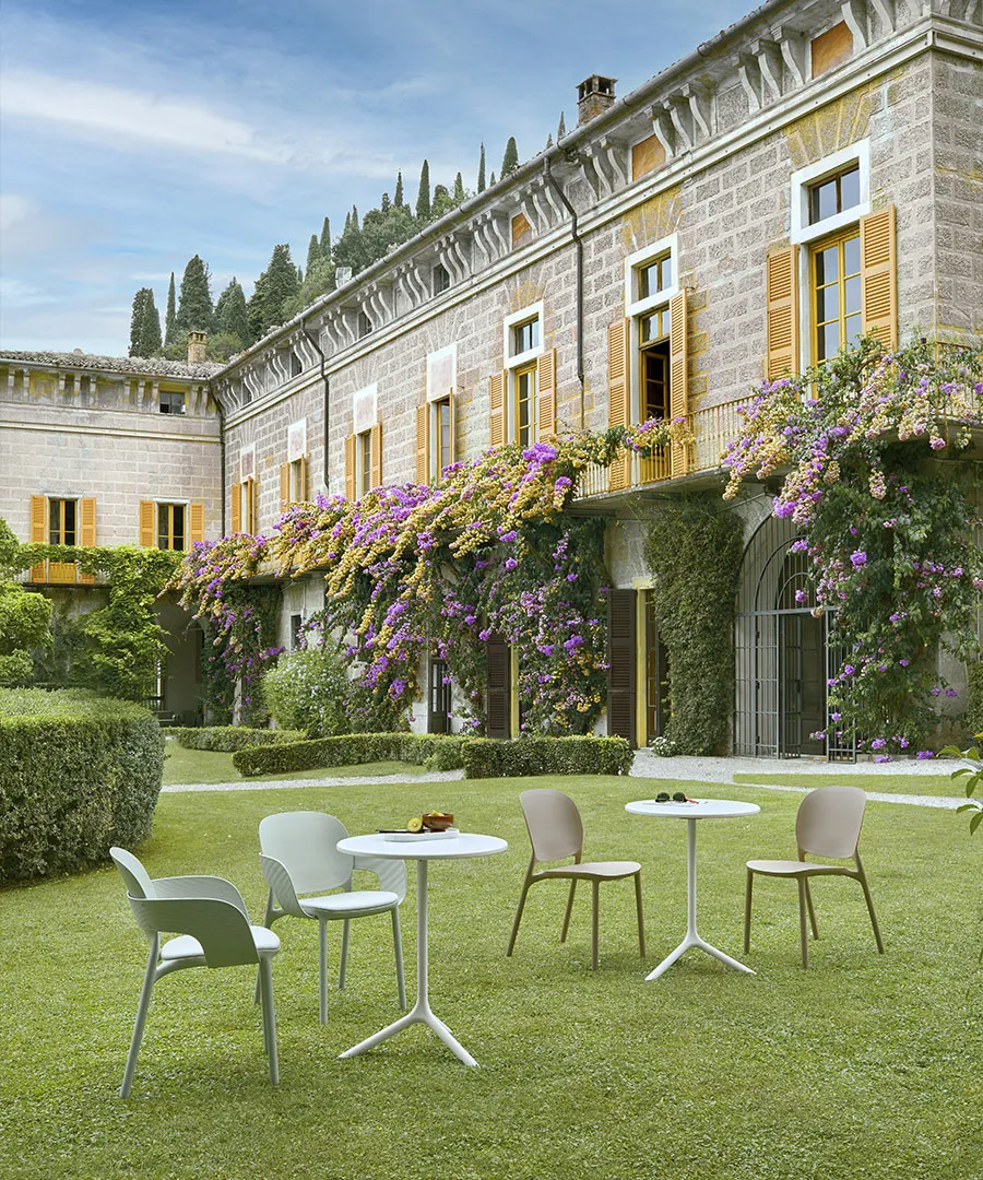 The new chair line is a return to the roots of S•CAB. This is because technopolymer was the chosen material to make it, but revised with a modern approach with the aim to be increasingly sustainable through concrete good practices in favour of the environment. HUG is therefore made with a certified regenerated Post-Consumer Recycled (PCR) material. Chair and armchair reach a higher ethical level and higher quality, giving life to a creatively green collection suitable for both indoor and outdoor environments. HUG features an extremely distinctive element: between the seat and the backrest the designers introduced a band-like element with a rounded and balanced shape, defined by a relieved striped pattern, that envelops just like a hug.