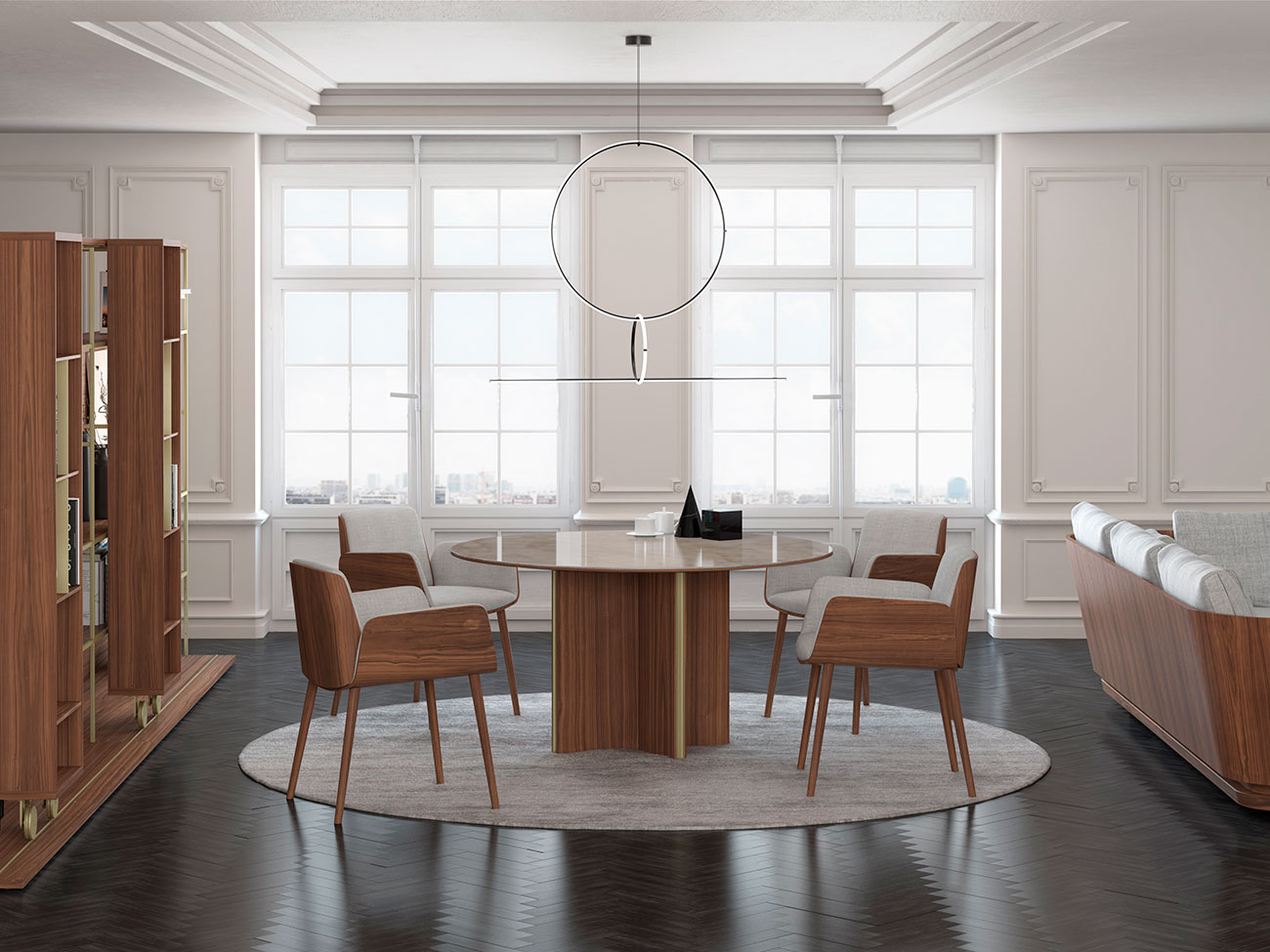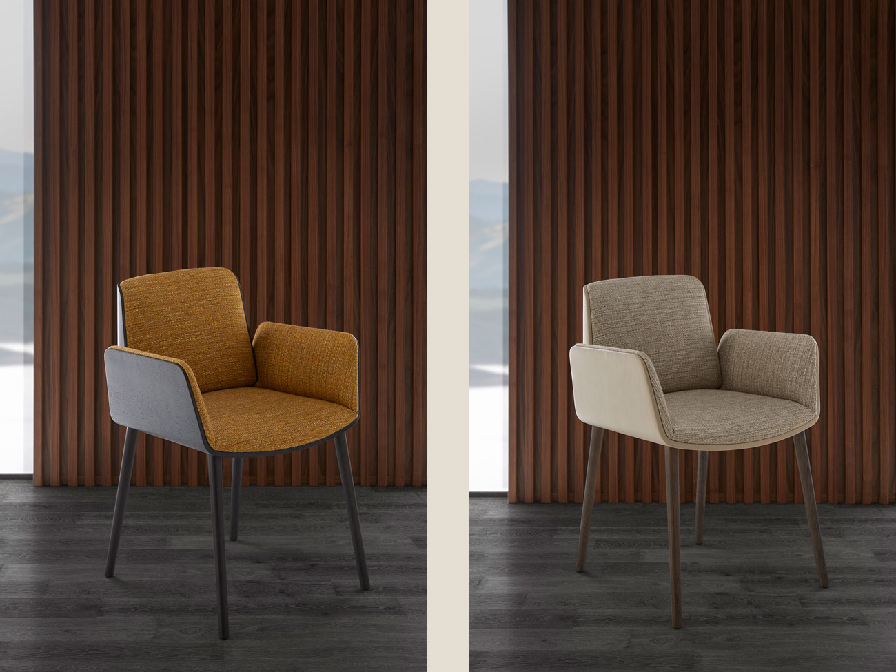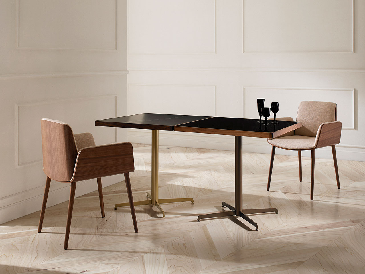 Noble woods and metals together with soft textiles and foams. Versatility and beauty for personal and professional. An irresistible embrace for the senses.