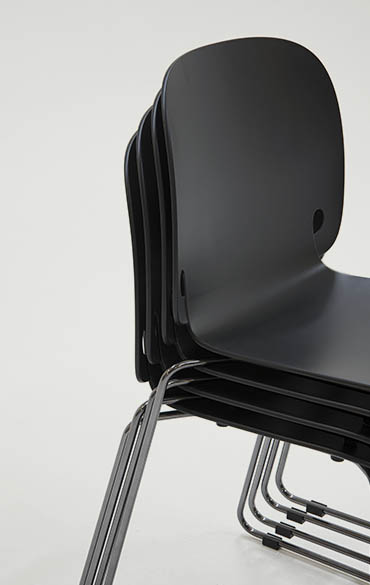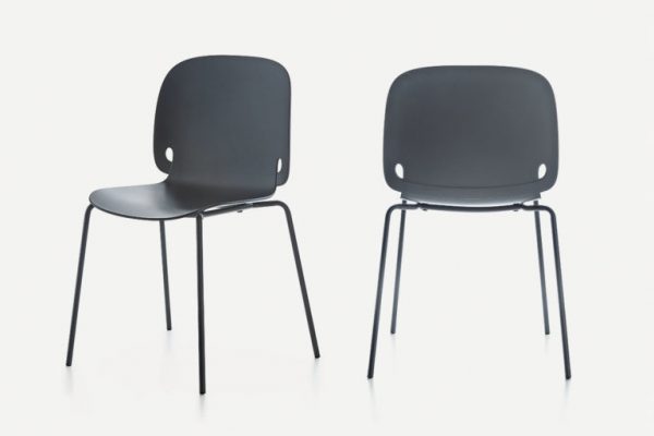 Intro as in “introverted,” from the idea of a person discreetly folding his hands behind his back. The essential design expresses a specific character: the base with its slender lines supports a comfortable seat, welcoming, soft to the touch. Seen from behind, the back displays the folded arms that provide a handy grip for lifting and moving the chair. The stackable structure permits optimization of spaces used for entertaining guests. Thanks to its form and the characteristics of its materials, Intro is also an excellent choice for any space in the home.