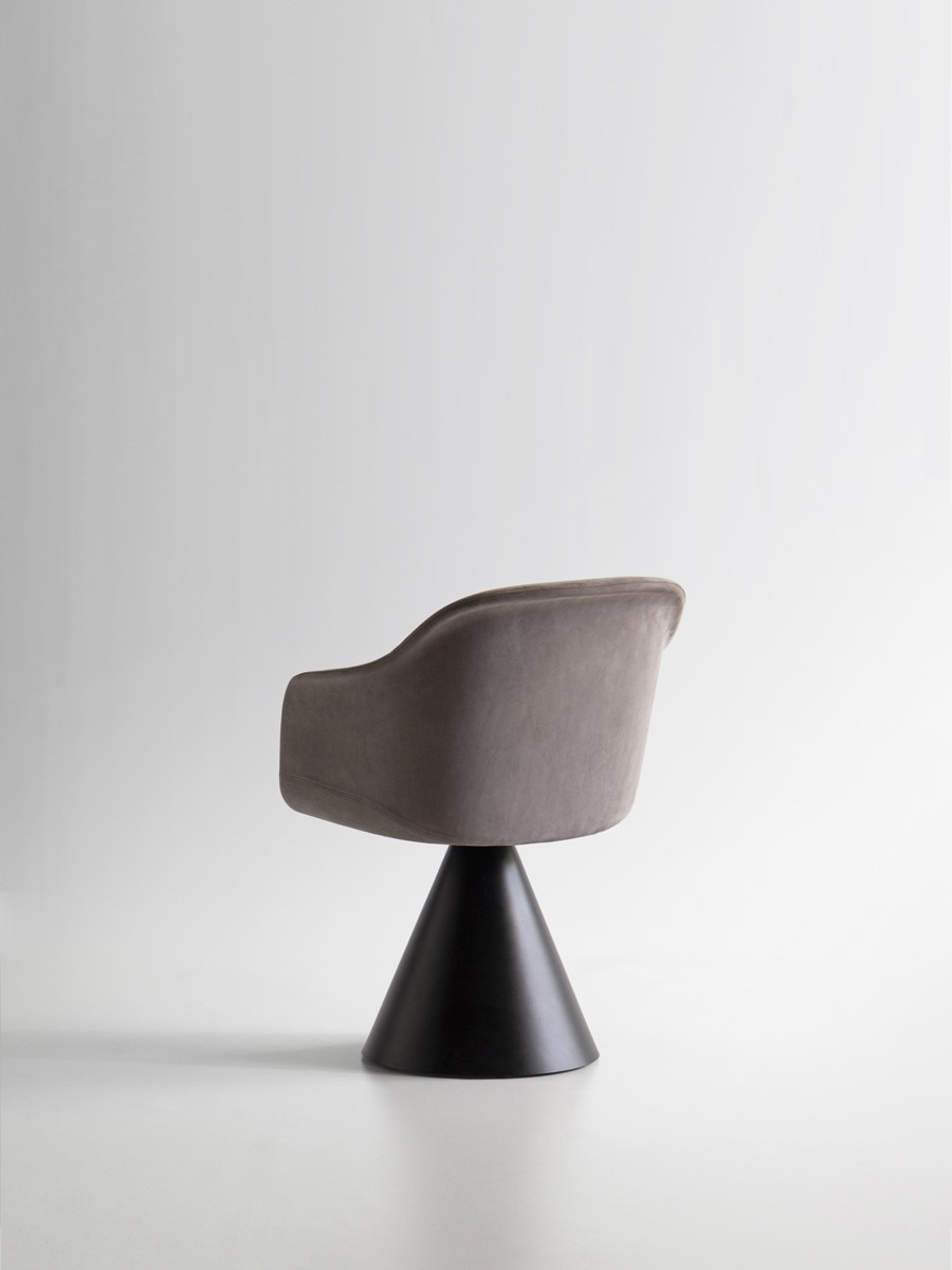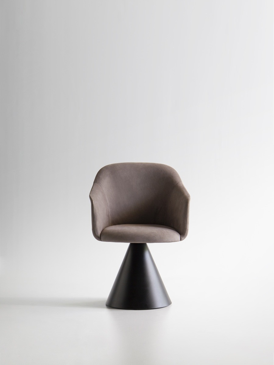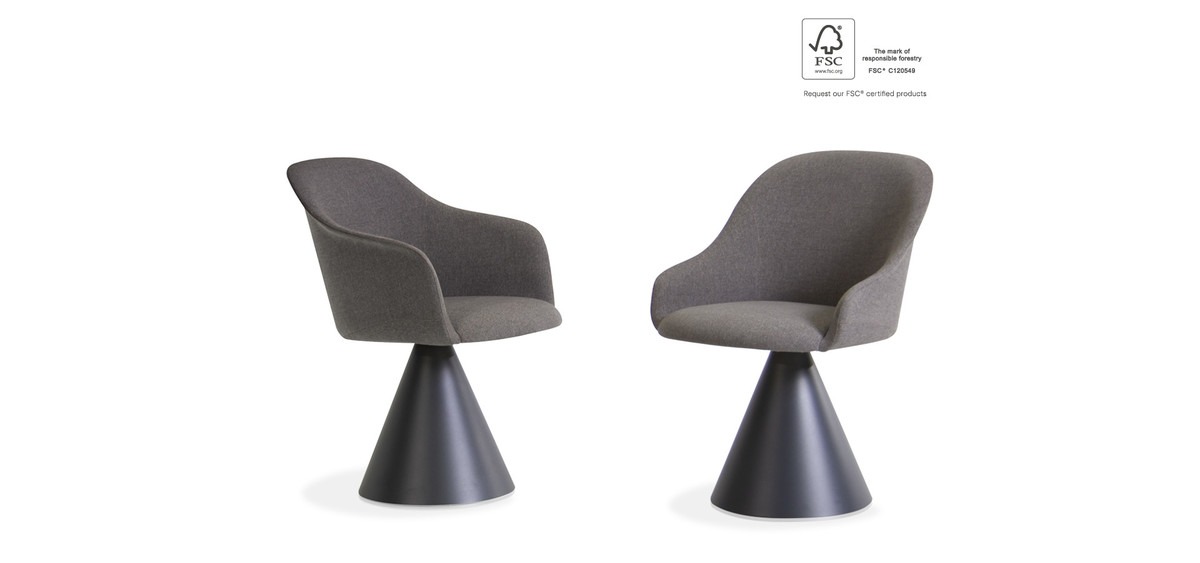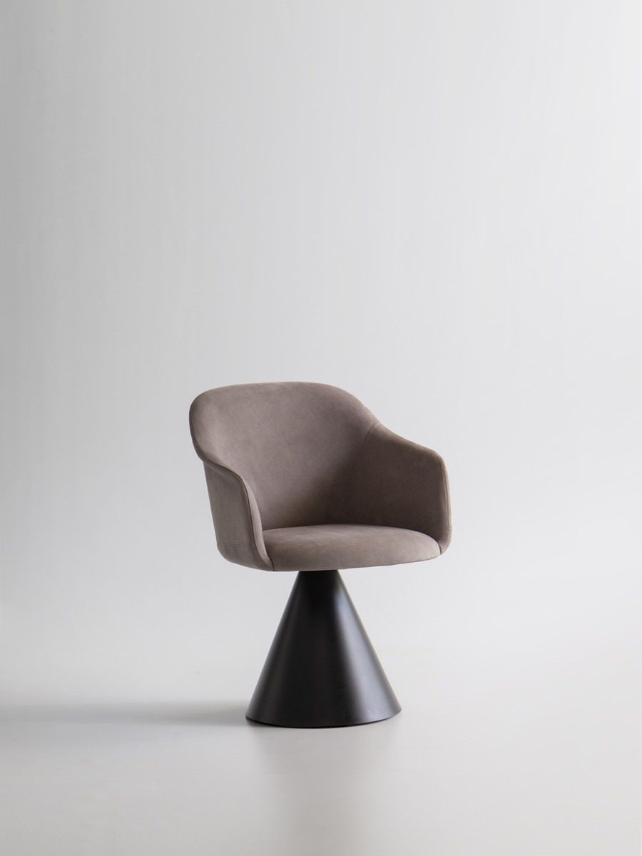 Chair and armchair with fully upholstered seat and backrest padded in fire retardant polyurethane foam, with . Finishes and coverings as per collection.