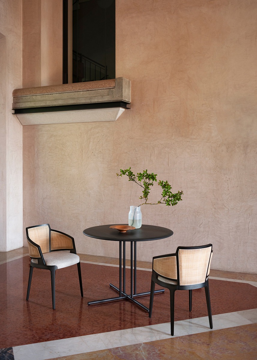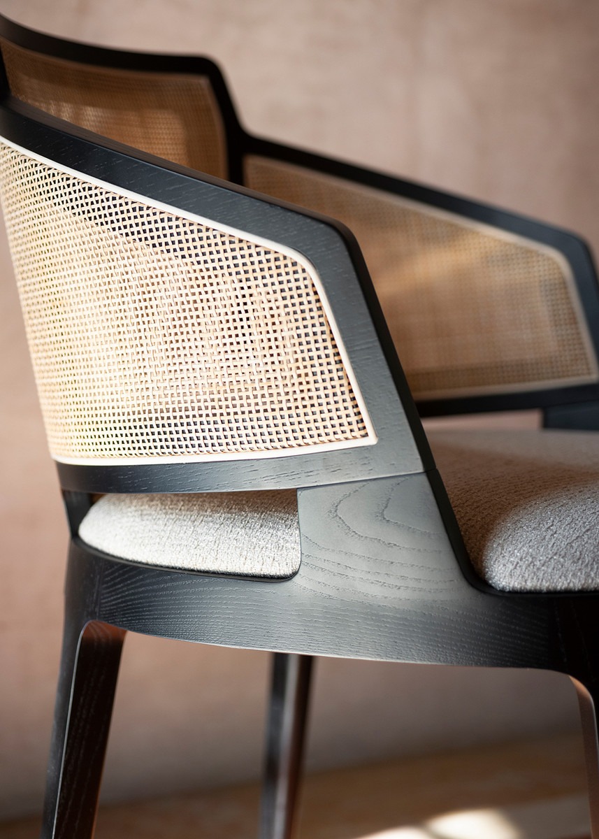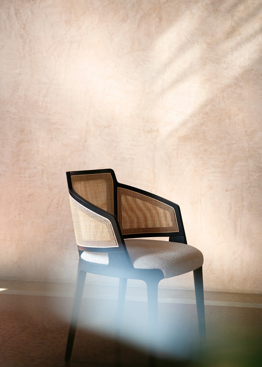 The Velis Cane armchair features an all-cane backrest characterized by an even more elegant and rigorous profile. Essential lines, balanced proportions and refined design are the fil-rouge that unites the elements that make up the collection, which adapts to the different needs of daily living, both in residential and contract settings.