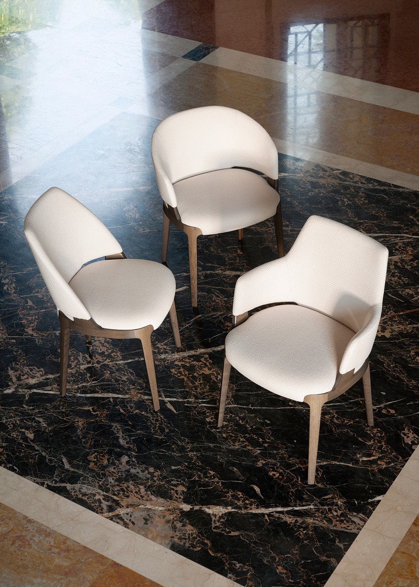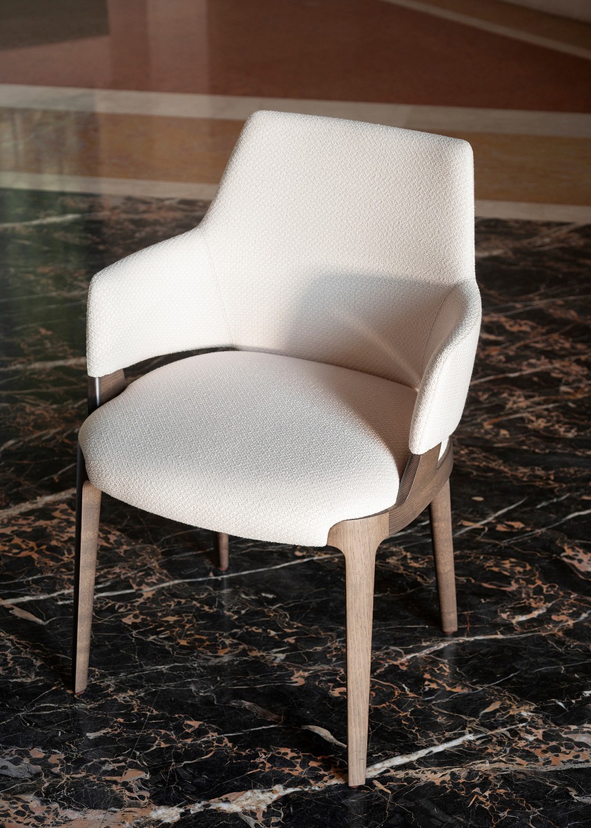 Velis Hug is a wide collection of seating designed to meet the diverse needs of daily living.It explores and solves at its best the relationship between upholstery and wood, defining the ideal integration between the parts, in a perfect balance: legs and wide and cozy seat meet in a frame that left exposed gives richness to the project.
