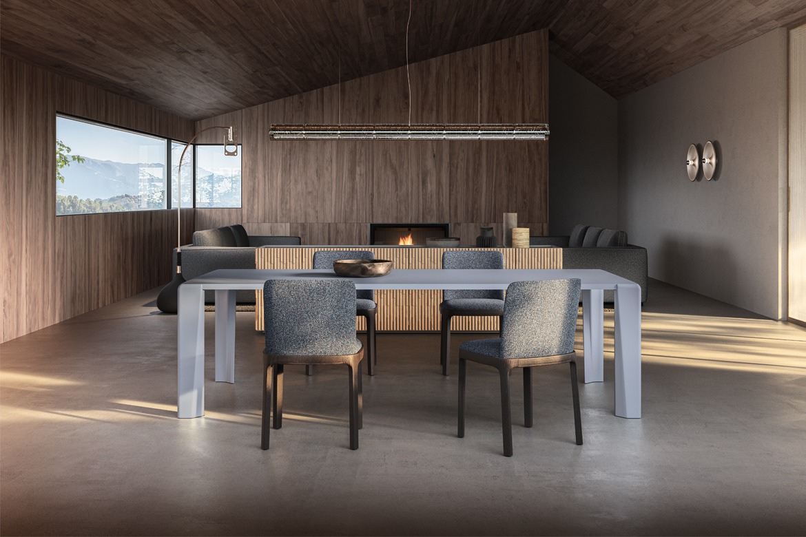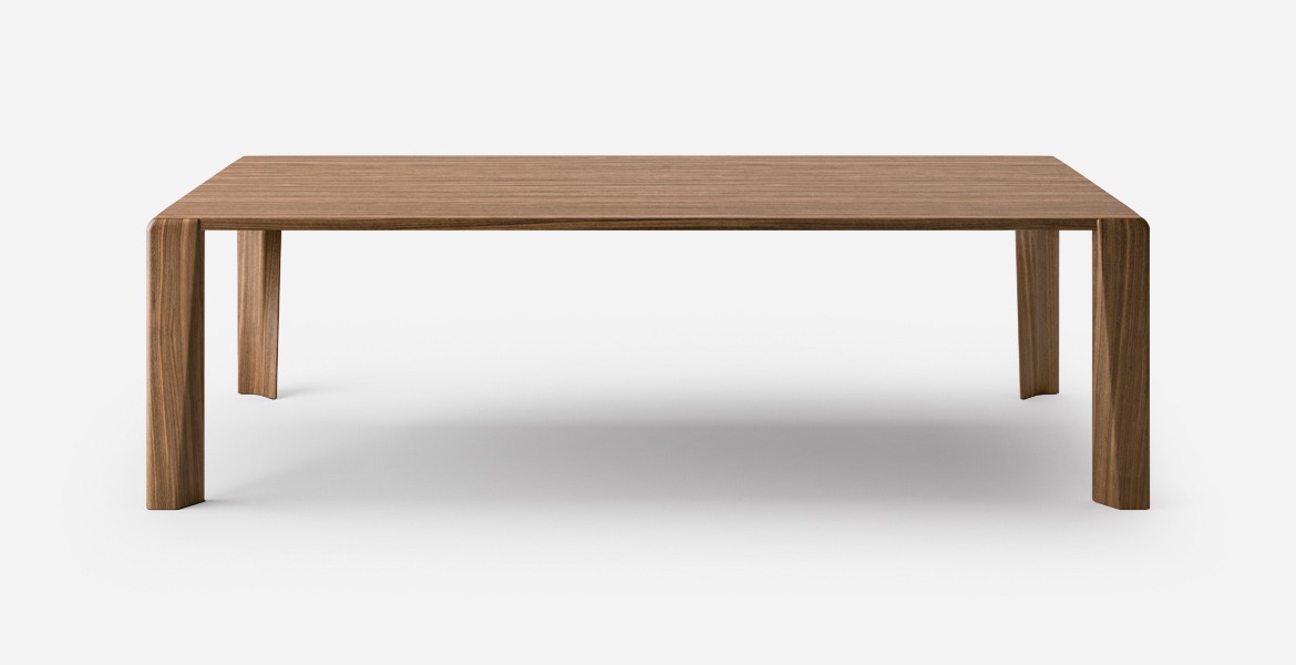 Dynamism and tension achieve a dimension of harmonious complicity. The Enea up table has distinctive geometric forms that highlight both the style and technical qualities of the material. The legs attach to the top gently wrapping around the edge, carving a role as the key feature. Produced from one solid piece of machined and shaped wood, they create fluid, articulated movement within the space. The result is a distinctive iconic design, enhanced by wood veining.