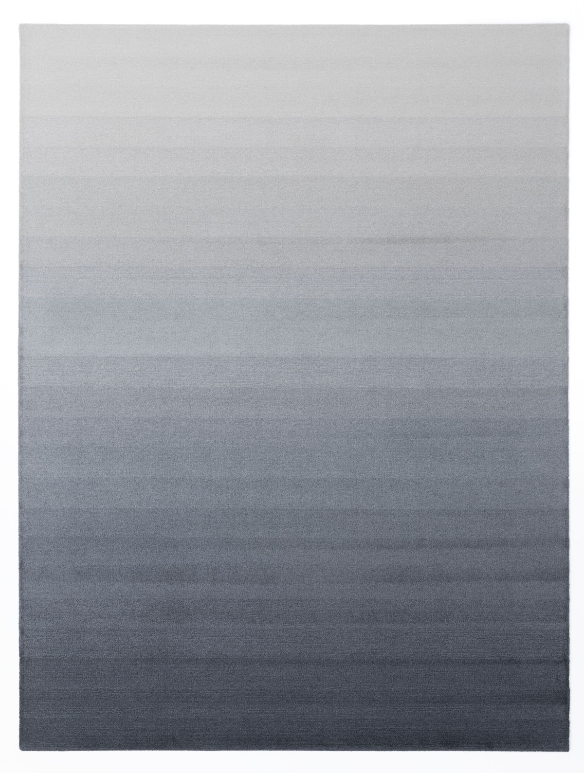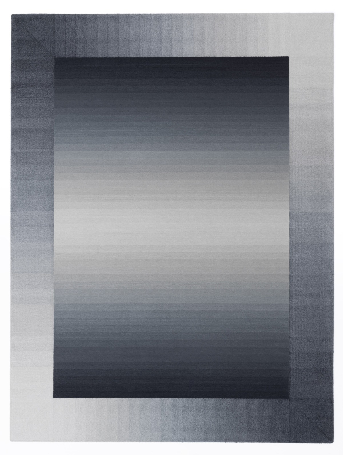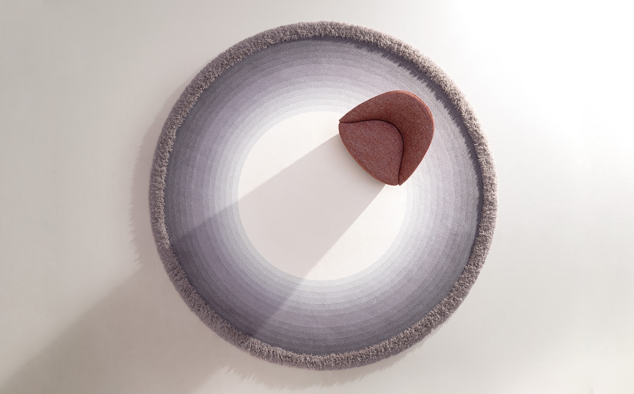 The name of the Gradé collection of rugs is inspired by the colour vibrations of pure New Zealand wool that range from pearl grey to anthracite.Made using the handtufting technique, which consists of inserting tufts of yarn inside a fabric backing, these rugs have a texture consisting of bouclé stitches and velvet for the inside, while the characteristic outer edge is fringed.