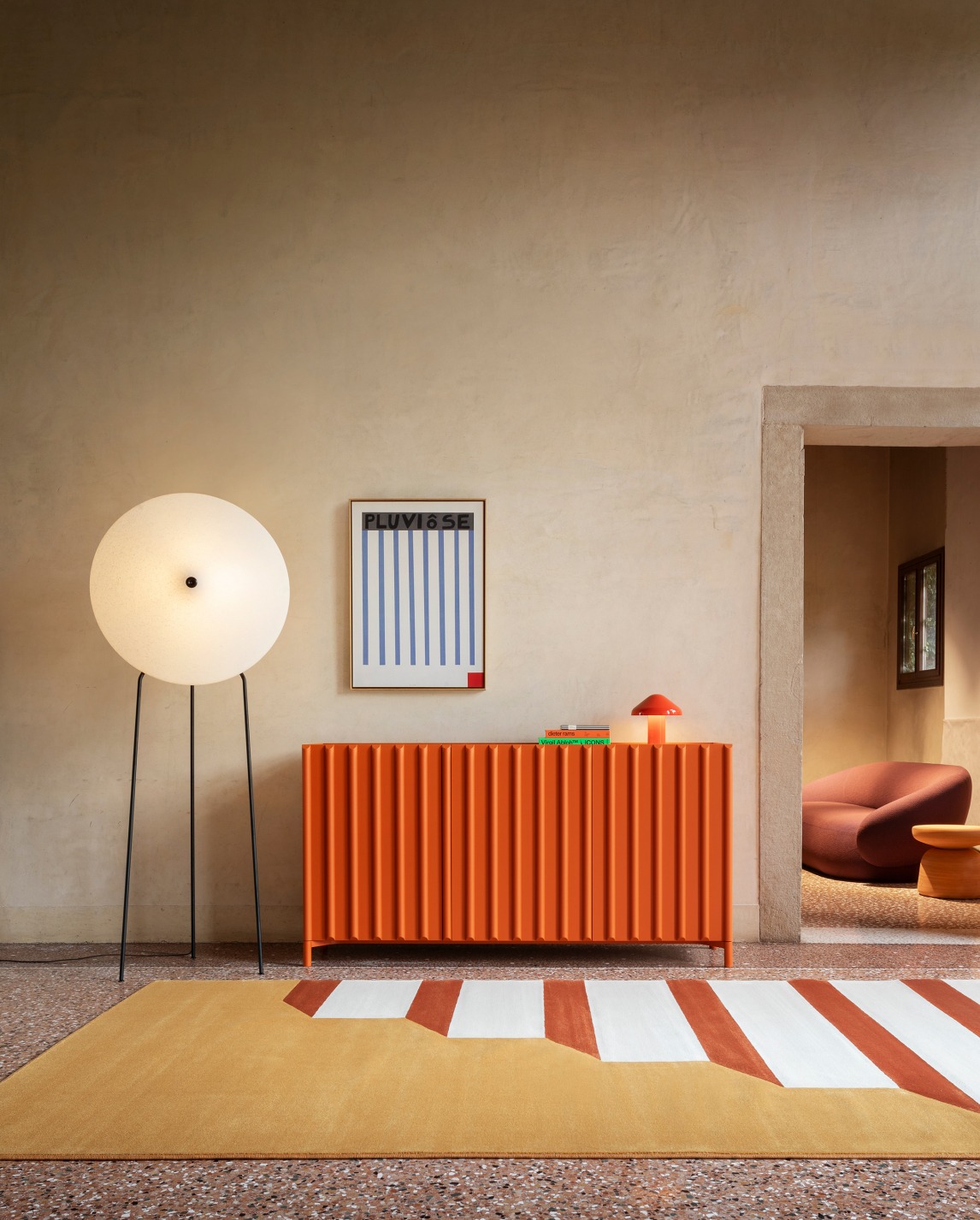 Packed with designThe industrial inspiration of the Container sideboard can be accentuated with lacquered colours or tempered by a wood finish, customisable from top to base. The sideboard's slatted front echoes the concertina effect of its bi-fold doors.