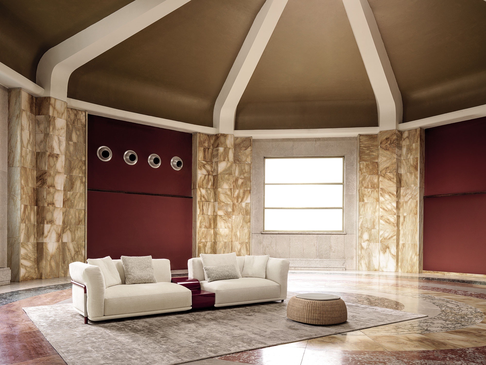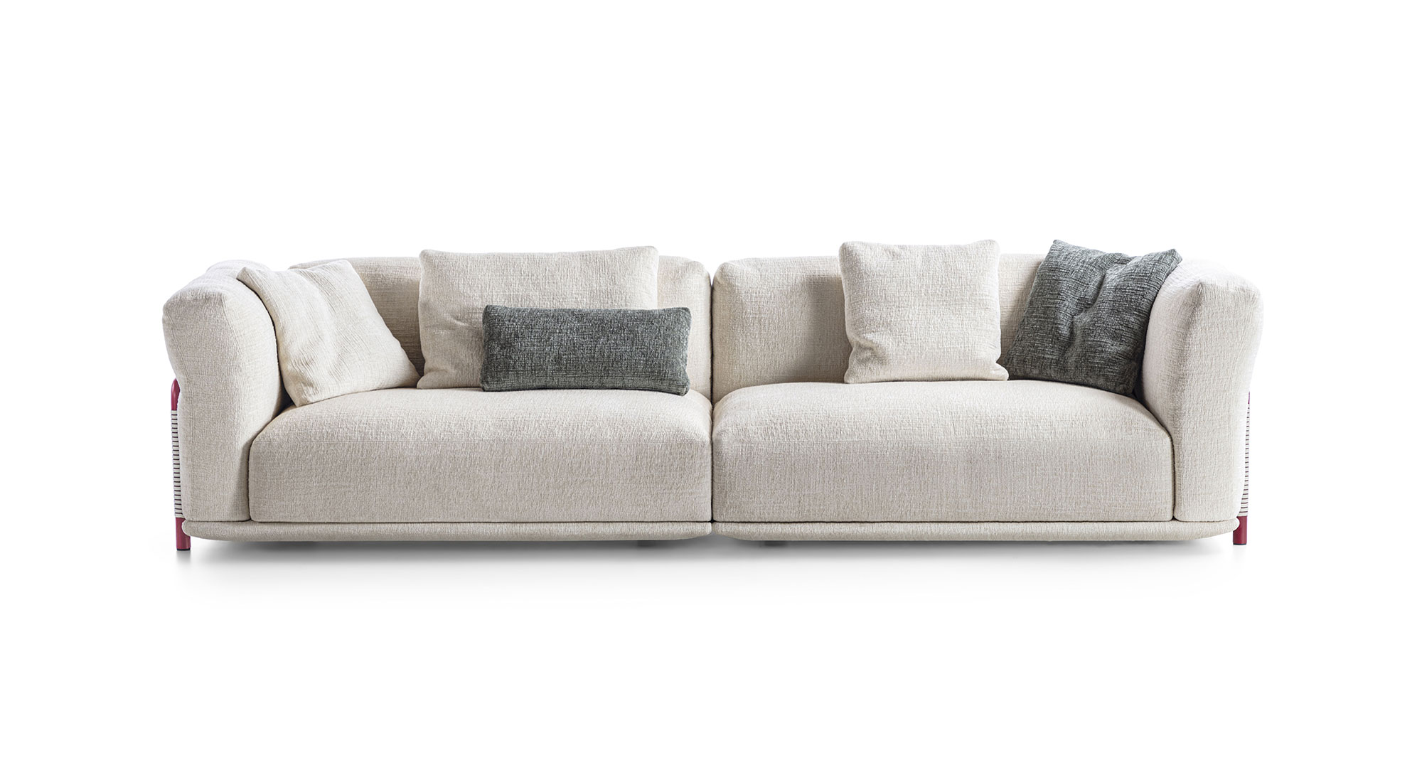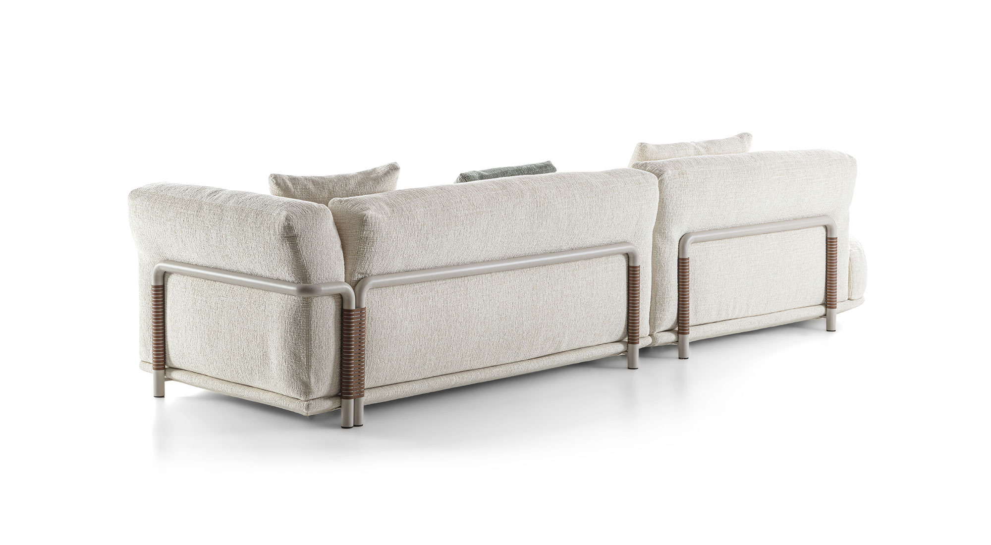 Calvi Brambilla, a multidisciplinary studio founded by Fabio Calvi and Paolo Brambilla that combines architecture, interior design and product design, signs the Felix modular sofa. Capable of blending imagination and rigor, furniture elements and decorative solutions, Calvi Brambilla draws an architectural sign with essential lines, which is distinguished by the elegance of its details. Generous seats, soft backrests and shaped armrests designed for maximum comfort are enclosed by a light metal perimeter: the armrests and the joints in the backrest are embellished with a hide-leather weave, which can be combined with the lacquered metal tubular structure adding a touch of color and fine craftsmanship to this project in a harmonious mix of contemporary design and vintage details. Felix is a piece of furniture with a timeless feeling, able to adapt elegantly to any environment and be interpreted personally, in the choice of textiles and material combinations.