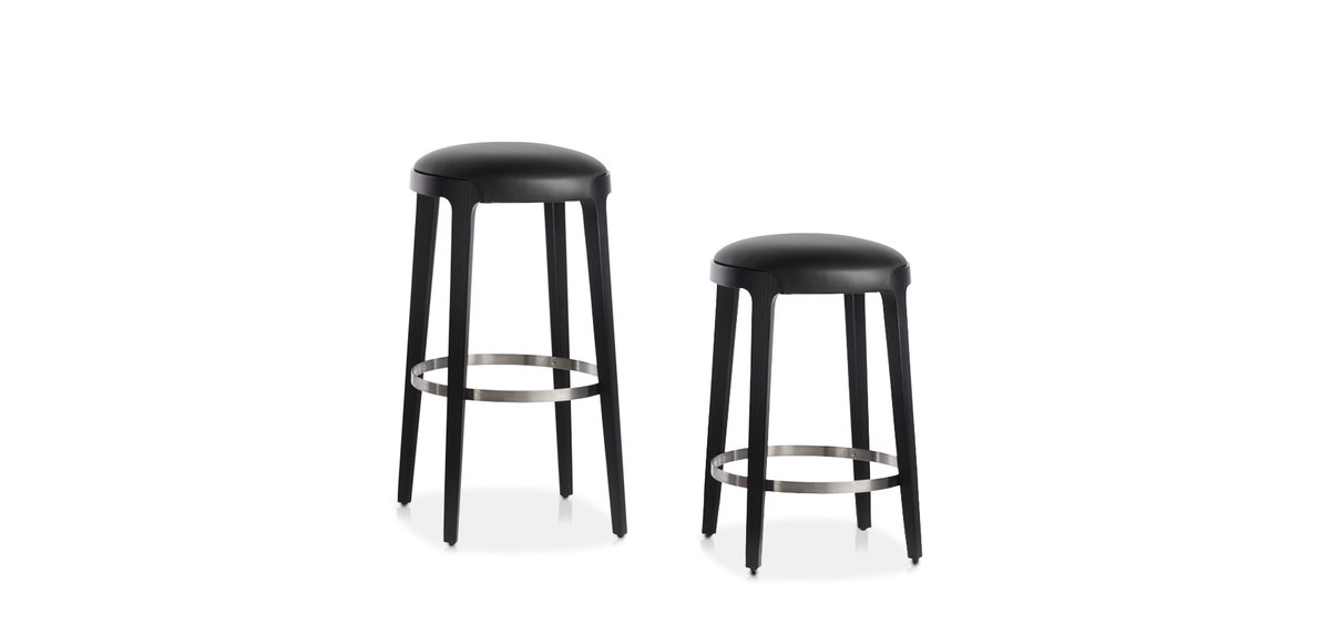 Velis is a wide collection of seating thought to satisfy different demands.In the version with circular upholstered seat without backrest, Velis stool completes all needs, from home to contract, in an ideal mix of refinement and functionality. Seat padded in fire retardant polyurethane foam with details in solid ash wood.