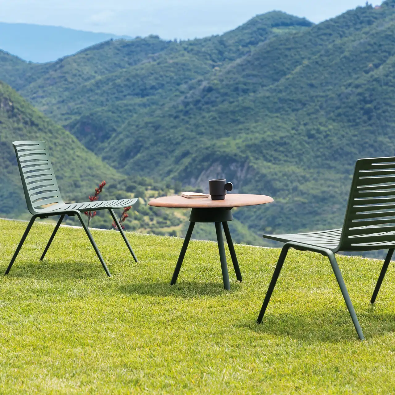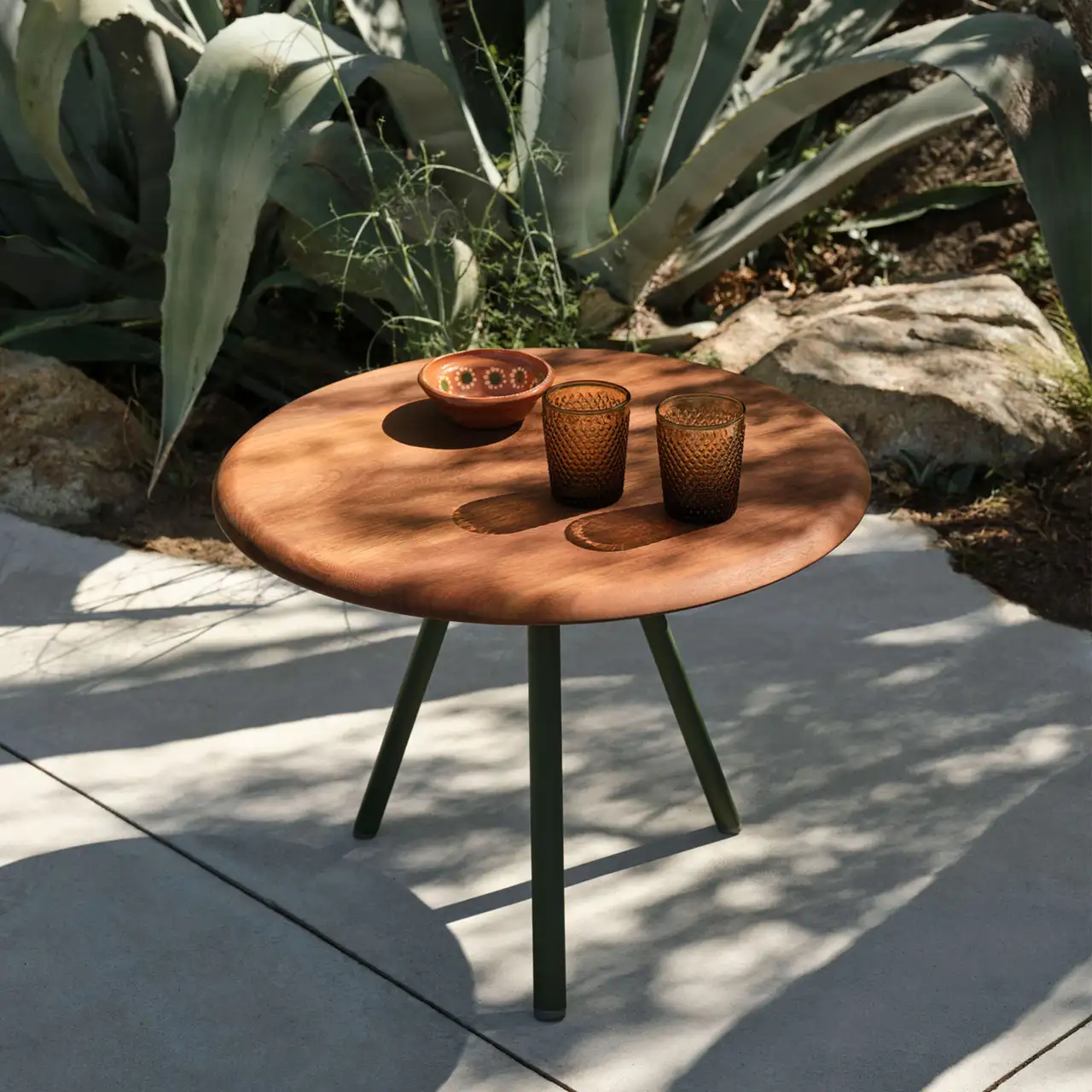 Small table in painted aluminium with top in Iroko. Item for the porch.