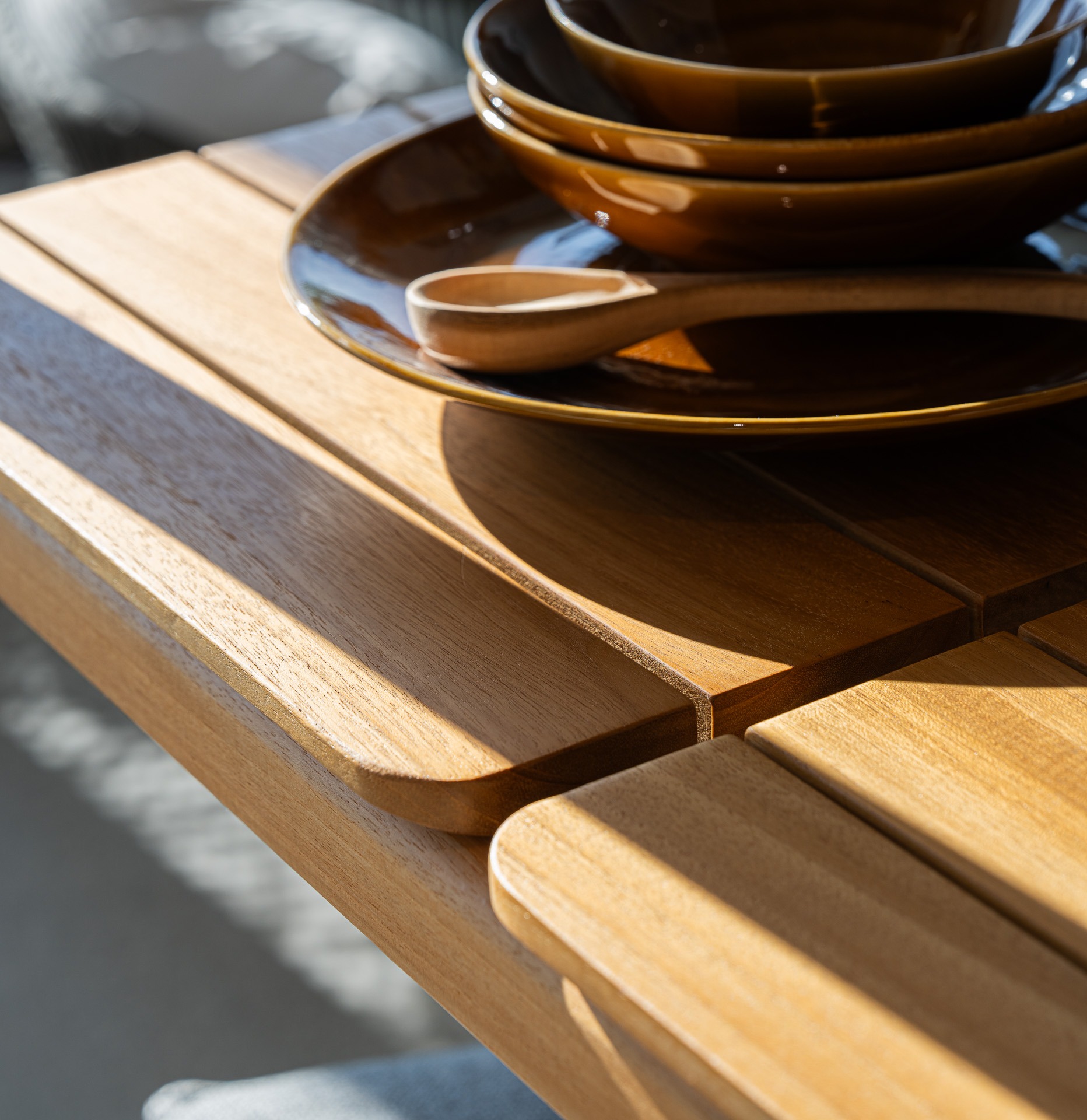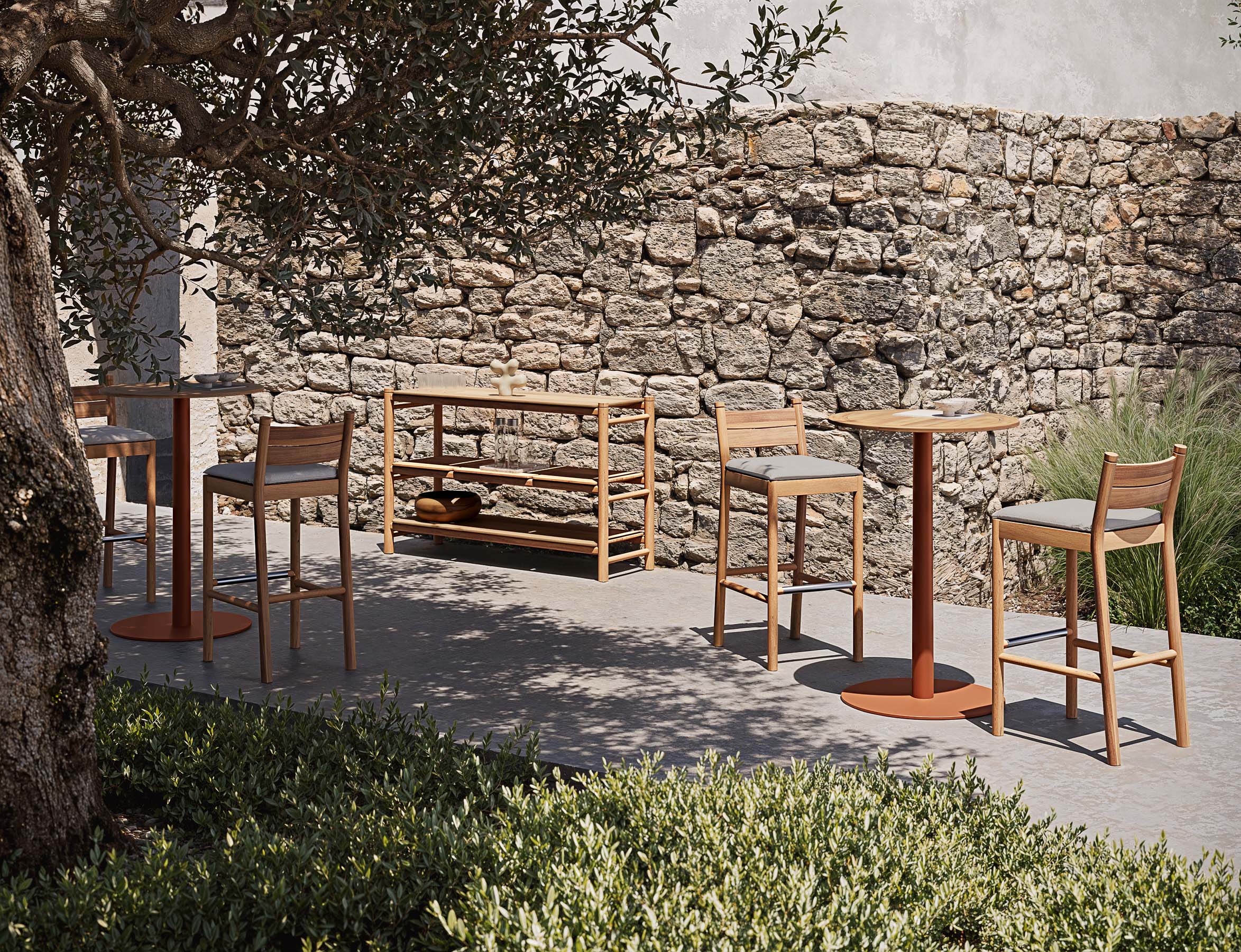 The console is equipped with spacious and removable shelves, offering an opportunity to organize and enhance the outdoor space in an elegant and functional way.
