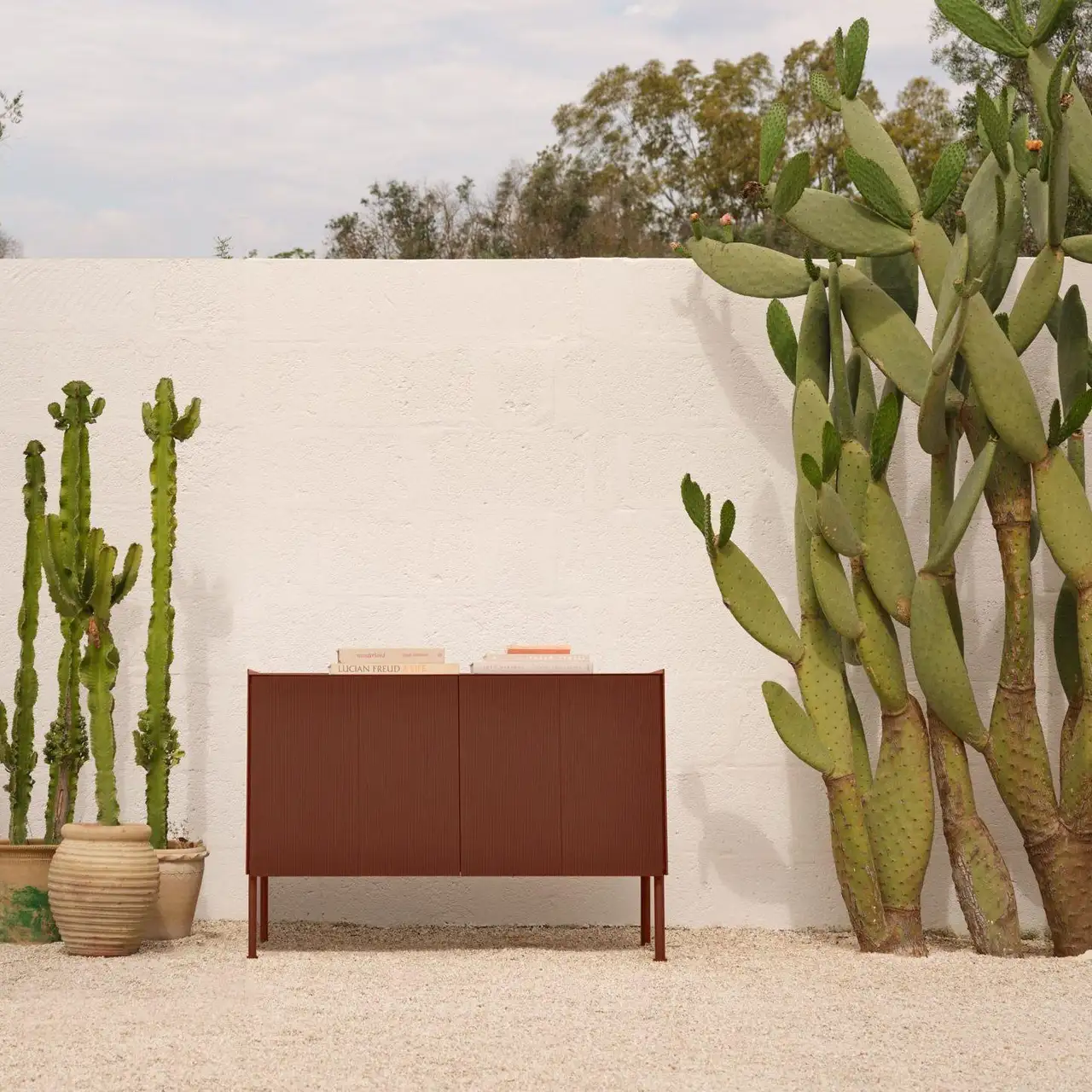 Low sideboard in painted aluminium with two doors