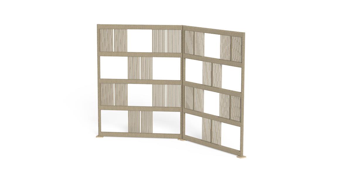 The Scacco collection H135 shows the pleasant geometric effect which inspired the collection. The nautical synthetic ropes used for the pattern cover the solid and safe aluminium structure which compose this particular and elegant product.