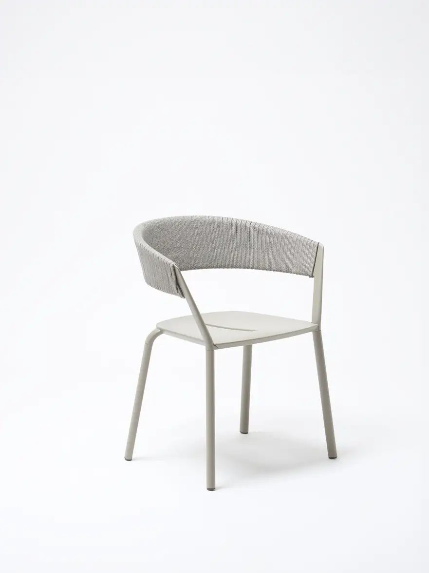 Dining armchair in painted aluminium with partially woven rope